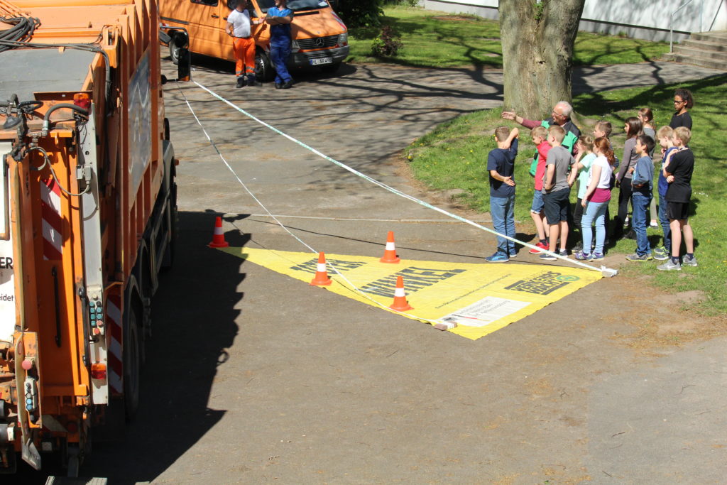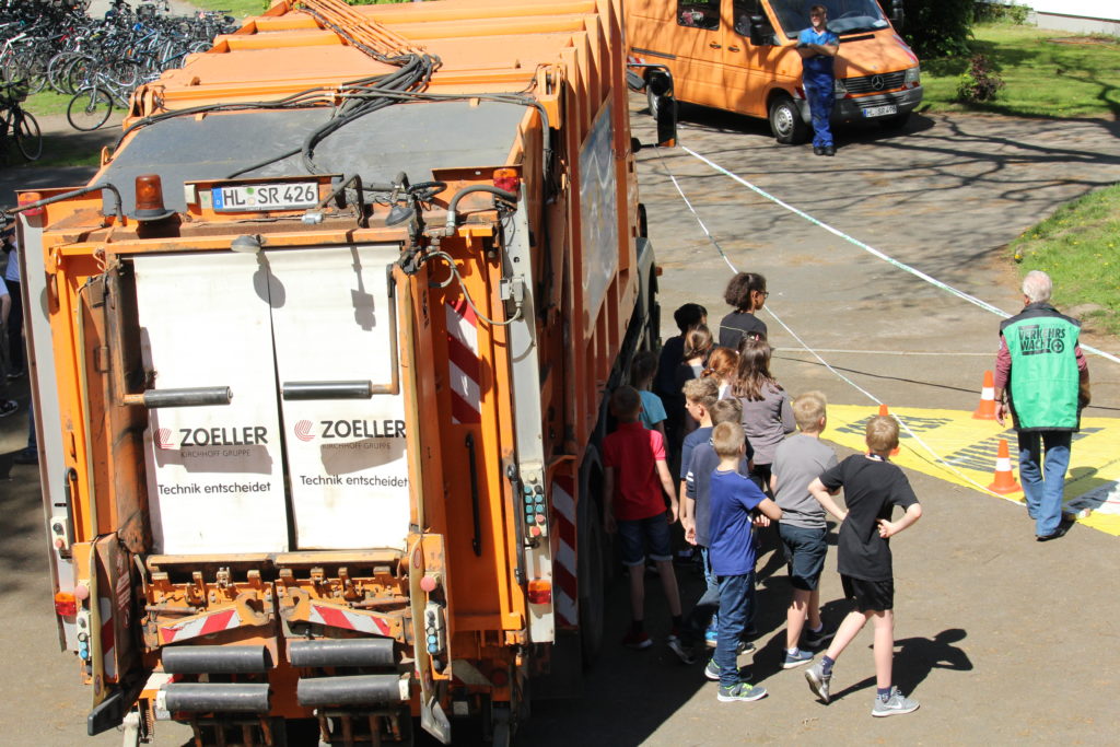 Unsichtbar im Straßenverkehr: Die Fünftklässler lernen die Gefahren des „toten Winkels“ kennen