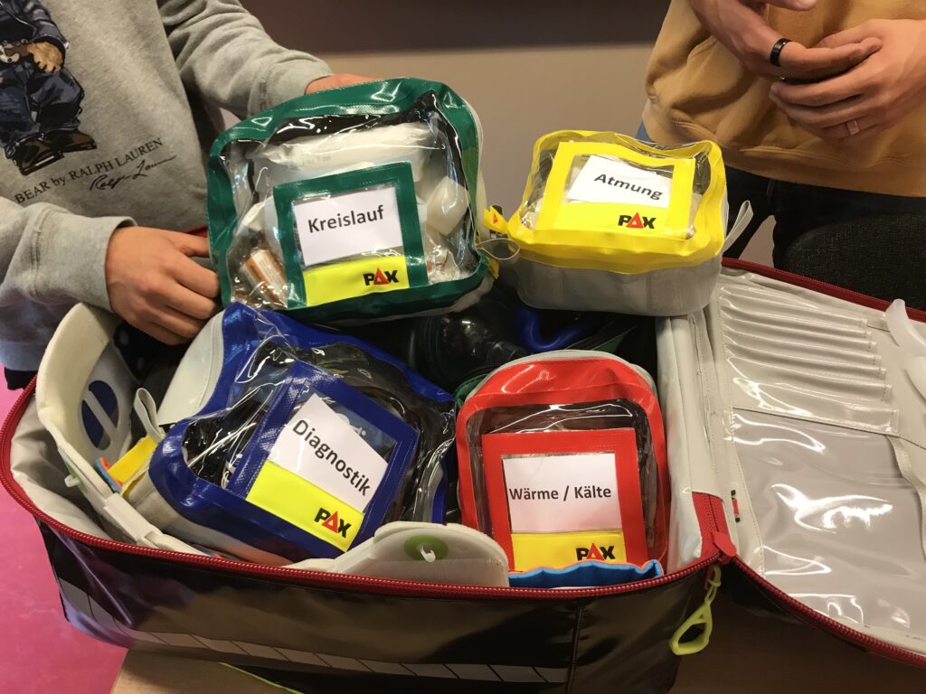 In der Ausbildung gab es natürlich einen Unterschied zur Corona Zeit und davor. Vor der Coronazeit hat man an 2 Wochenenden mit ca. 100 weiteren Schülern für die Prüfung gelernt, und in der Coronazeit hat dann alles über Videokonferenzen stattgefunden. In der Ausbildung gibt es eine praktische und eine theoretische Prüfung, die beide bestanden werden müssen, wenn man als Schulsanitäter anfangen will. Außerdem gibt es alle 3 Monate also ca. 4-mal im Jahr eine Fortbildung, die dann einen Nachmittag ca. 3 ½ h geht.
