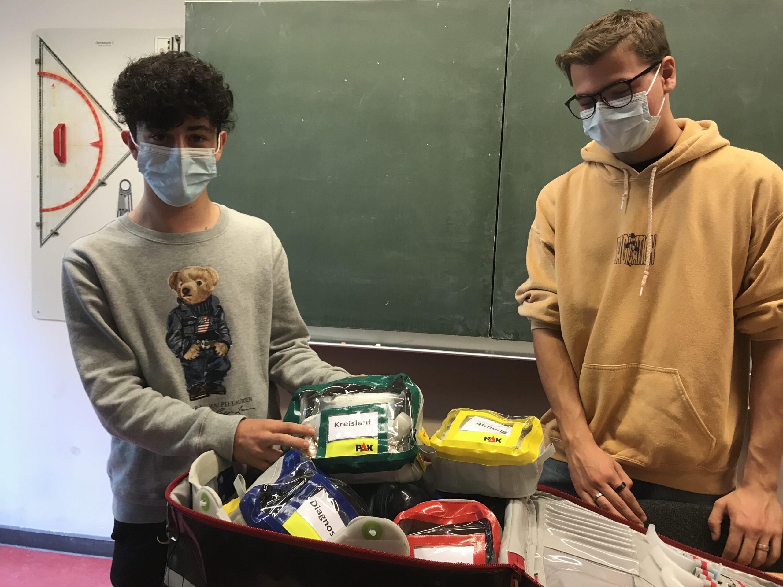 Momentan leitet Lena S. (12. Klasse) das Team der Schulsanitäter, und ihre neuen Stellvertreter sind Lennart und Maximilian, welche bei einer Fortbildung gewählt wurden.