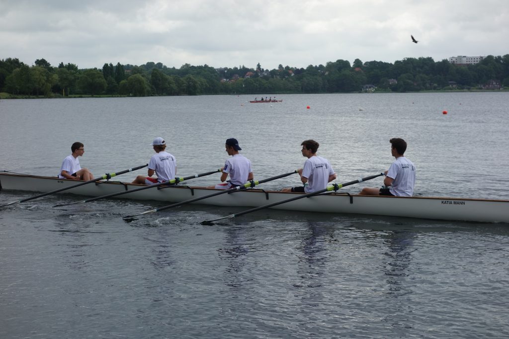 Die Jungenmannschaft mit Alex G., Alex M., Niklas, Kolja und Steuermann Robin erreichten im Gig-Vierer einen guten dritten Platz. Im nachfolgenden Rennbootrennen mussten sie sich leider aufgrund eines Krebses deutlich gegenüber den Konkurrenten geschlagen geben, obgleich sie auf der Strecke etliche Meter wieder aufholen konnten.