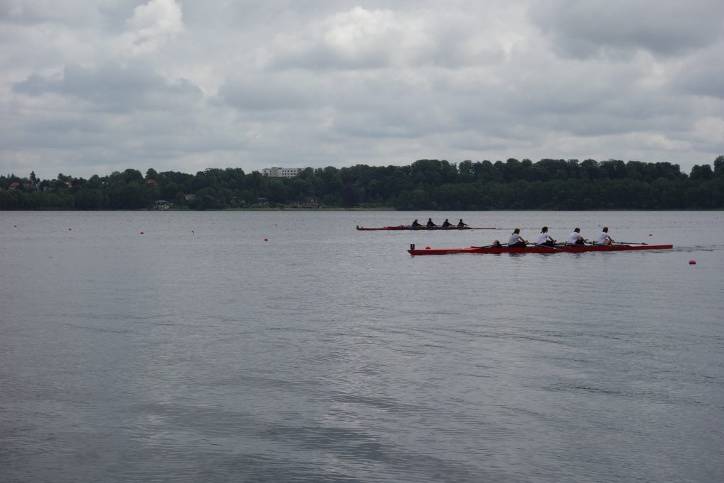Die Thomas-Mann-Schule ging mit zwei Mannschaften in jeweils zwei Rennen an den Start. Das Wetter stand zu Beginn der Veranstaltung unter keinem guten Stern, denn es waren ordentliche Winde vorausgesagt. Zum Glück blieben diese während der Veranstaltung weitgehend aus, was zu guten Bedingungen für alle Teilnehmer führte. Lediglich ein, zwei ordentliche Schauer mussten die Ruderer über sich ergehen lassen, aber immerhin handelt es sich ja um Wassersport.
