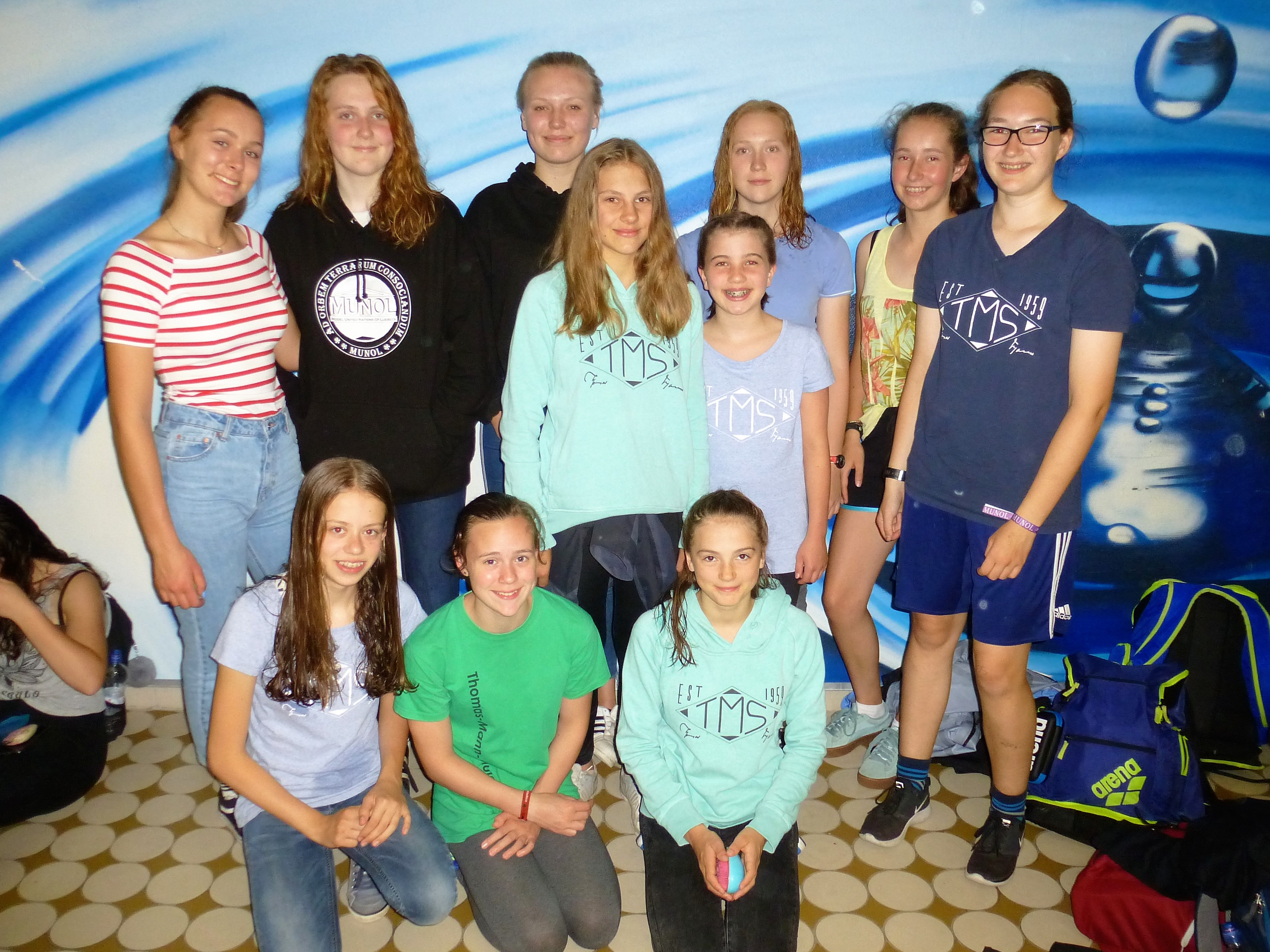 Mit nur drei Sekunden Rückstand auf den zweiten Platz gingen die Mädchen WK III ins Wasser – allerdings hatten sie auch nur wenige Zehntel Vorsprung vor dem vierten Platz, sodass es spannend werden sollte, welche Mannschaft am Ende auf welchem Platz landete. Etwas enttäuscht wurden Jule, Friederike, Juliane, Johanna, Lina, Hannah, Janne, Leonie, Ann Efje und die Ersatzschwimmerin Lara aus den Klassenstufen 7, 8 und 9, als es der vierte Platz wurde. Noch liegt keine zeitliche Auswertung vor, sodass wir nicht wissen, wie knapp es am Ende tatsächlich war und wie eng die Teams zusammenliegen. Trotzdem einen herzlichen Glückwunsch für eure tolle Leistung!