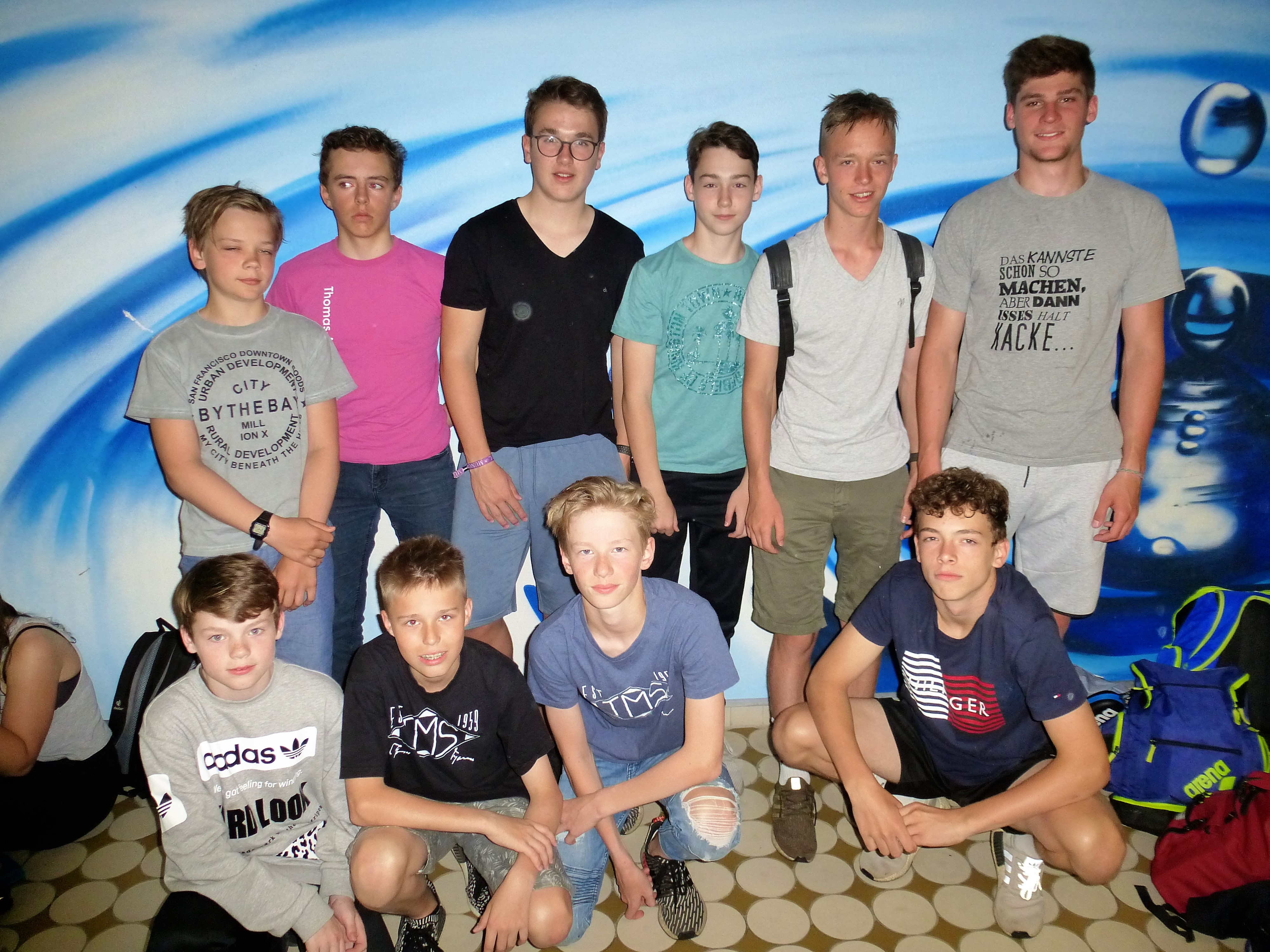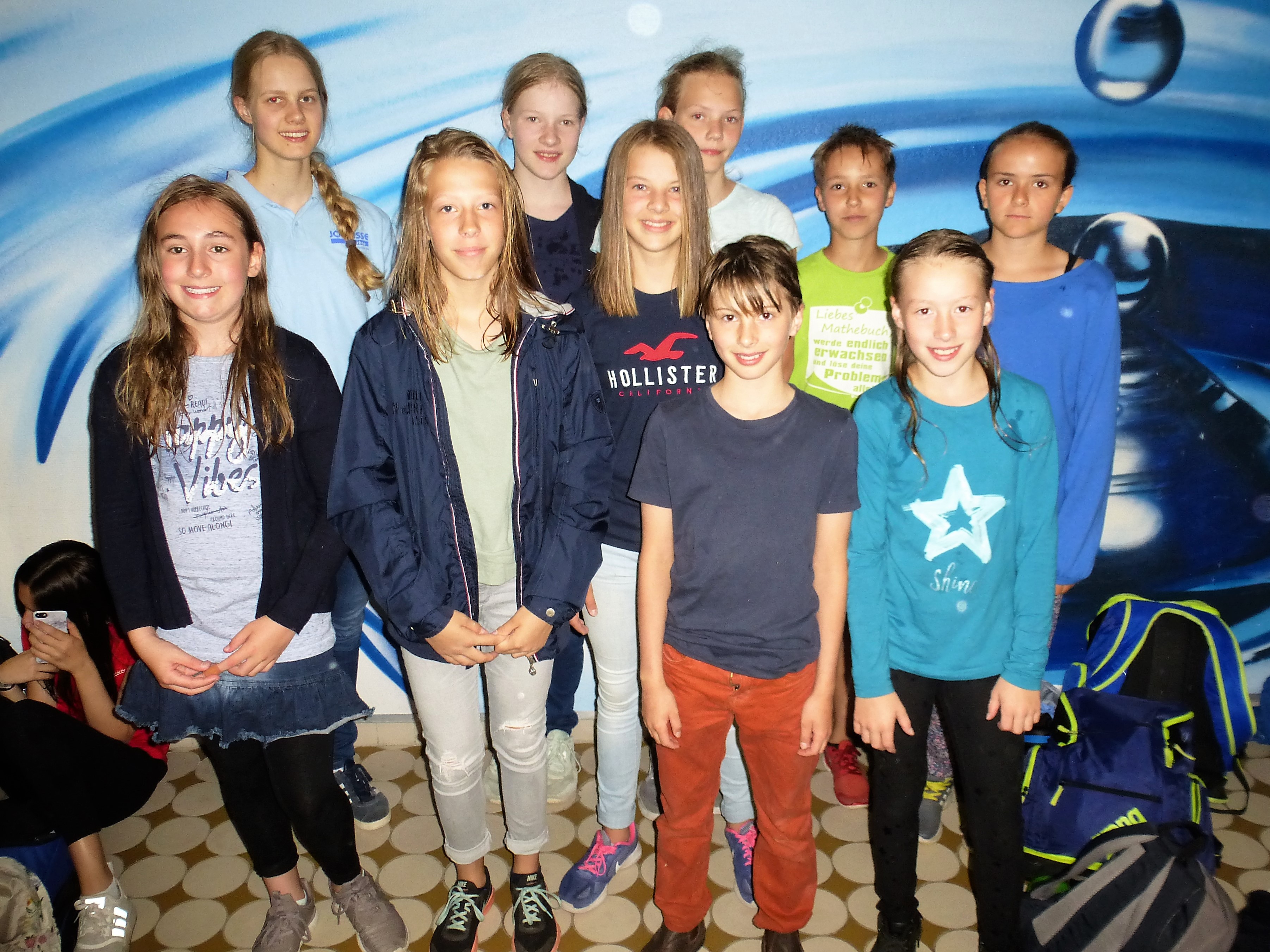 Die Jungen WK IV traf das krankheitsbedingte Absagen eines Mitschülers schwerer, am Ende landeten sie auf Platz 5 – aber dafür, dass die Mannschaft nur aus Fünft- und Sechstklässlern besteht, ist das ein gutes Ergebnis. Jaron, Jonathan, Mick, Maximilian, Roald, Mattis, Maximilian, Max und Ersatzschwimmer Justus, das habt ihr richtig gut gemacht, und in den nächsten Jahren könnt ihr euch sicherlich noch steigern!