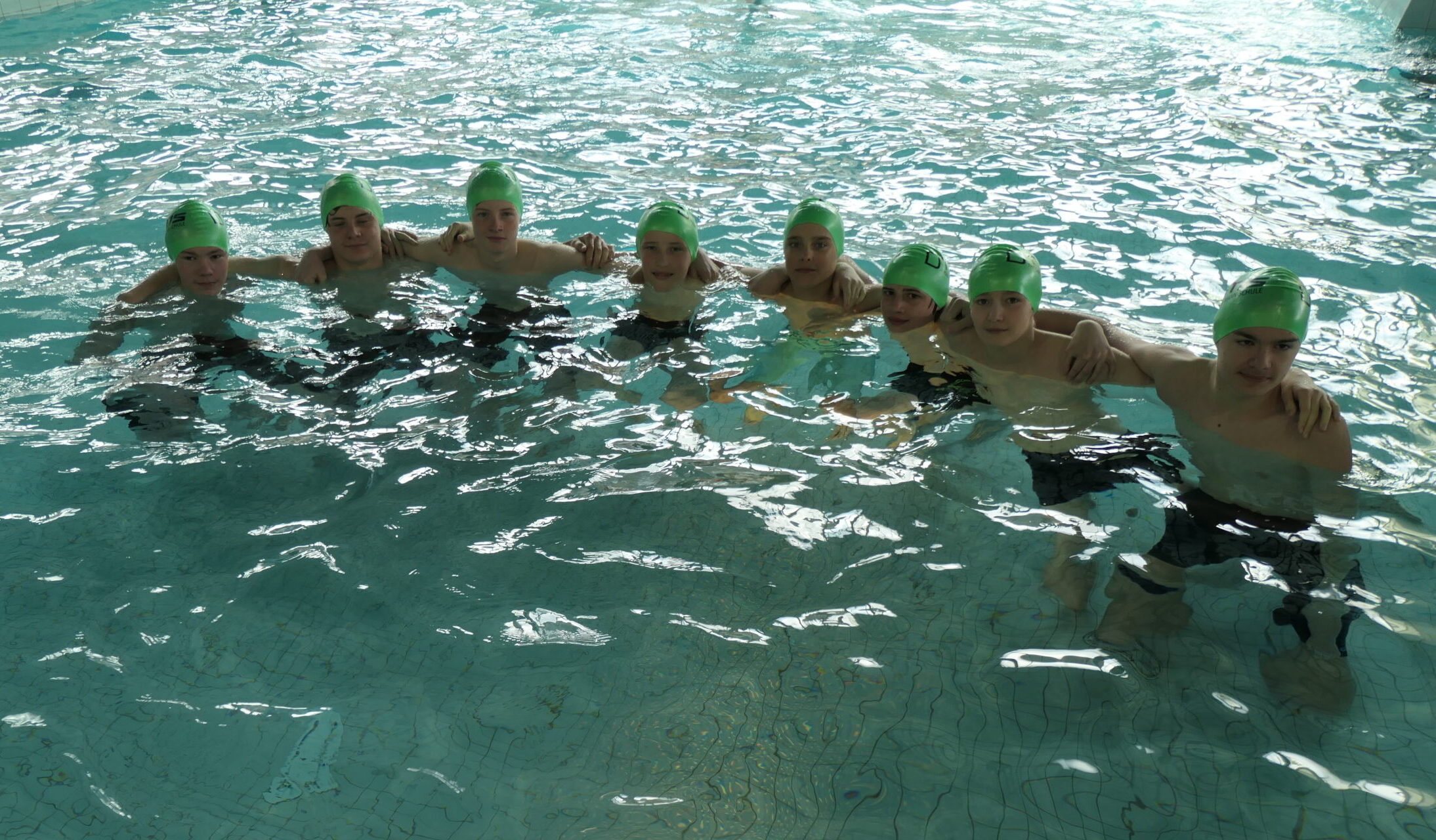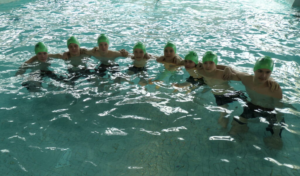 Eine sehr motivierte Mädchenmannschaft WK IV (aus den Klassenstufen 5 und 6) sowie eine ebenfalls motivierte, aber durch viele Absagen geschwächte Jungenmannschaft WK III (aus den Klassenstufen 6 bis 8) gingen am Donnerstag, den 25.4.2024 im Zentralbad in der Lübecker Schmiedestraße zum Vorkampf an den Start.