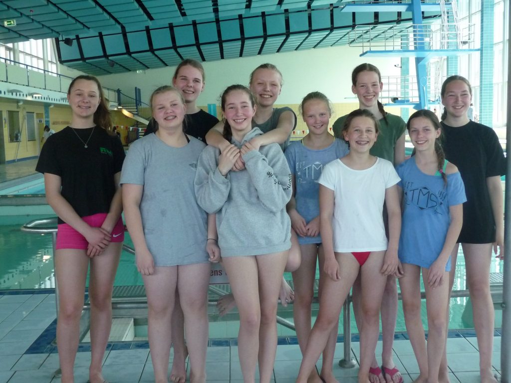In der Altersklasse WK III schwammen bei den Mädchen: Hannah, Charlotte, Pia, Katharina, Emma, Lara, Janne, Chiara und Anna.