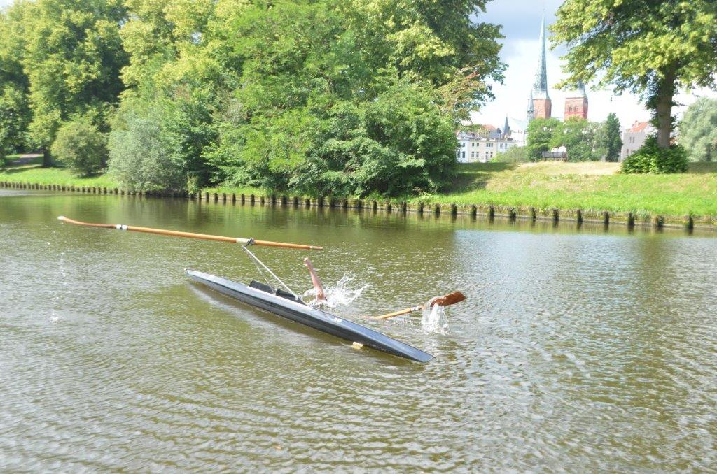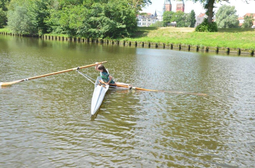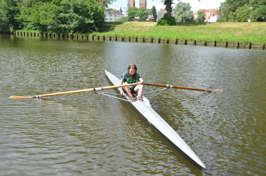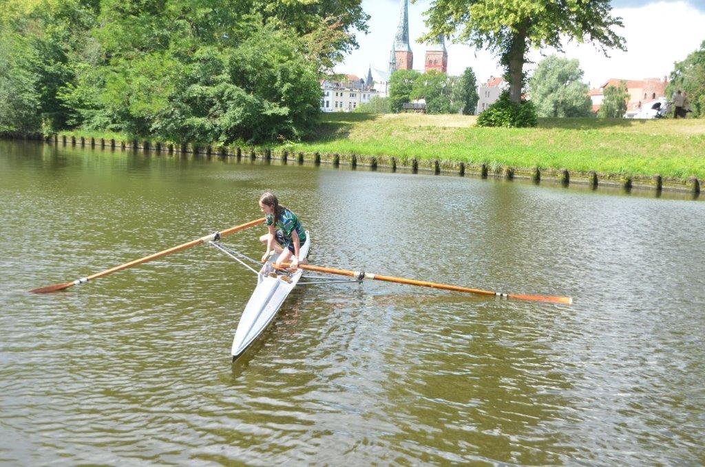 Alle Anfänger:innen, die zum ersten Mal in einem 7 m langen und 35 cm breiten Einer (Skiff) rudern sollen, habe Angst zu kentern. Selbst der Hinweis des/r Ausbilders/ Ausbilderin „Du kannst doch schwimmen, das ist doch nicht schlimm, wenn du baden gehst“ wirkt nicht beruhigend. Nach einigen Übungsstunden sind die Anfänger:innen dann aber sicher in der Beherrschung des Bootes und es erfolgt die nächste Stufe der Ausbildung: Kentern und wieder ins Boot einsteigen. Inzwischen ist das Gleichgewichtsgefühl so gut geschult, dass sich die Kinder fragen: „Wie soll ich ins Wasser fallen?“ Meistens gelingt es, wenn sie ein Skull lang machen und sich zu dieser Seite neigen. Nun beginnt die schwierige Aufgabe, wieder ins Boot ein zusteigen. Zunächst bringt man die Skulls wieder unter Kontrolle, d.h. in die Position senkrecht zum Boot. Dann kippt man das Boot leicht zu sich, damit man sich mit dem Oberkörper darauf schieben kann. Dann schwingt man ein Bein auf die andere Seite und richtet sich auf. Nun braucht man nur noch die Füße in die Stemmbretter zu stecken und schon ist man wieder ruderfertig.