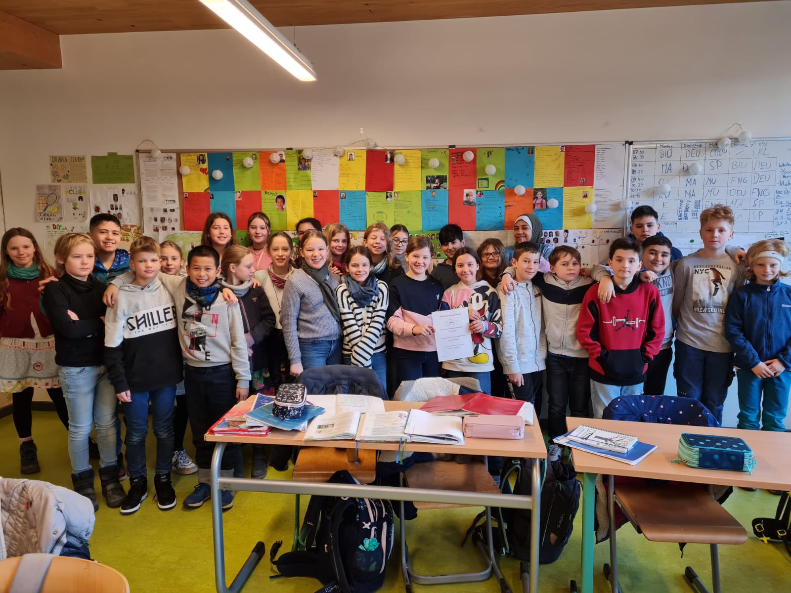 Das ist die 5c, sie präsentierte den schönsten Klassenraum, sodass die Schüler einen Eis-Gutschein gewonnen haben. Sobald die Temperaturen wärmer sind, können sie ihn einlösen. Wir wünschen euch viel Spaß und guten Appetit.