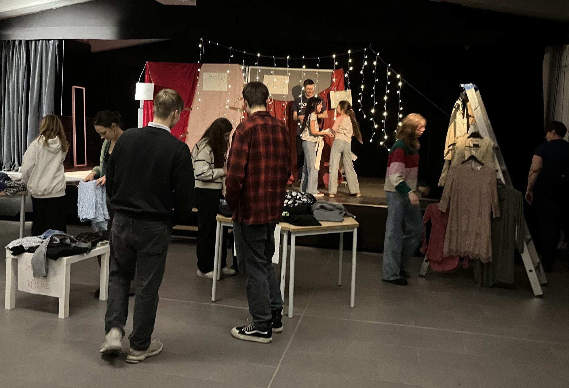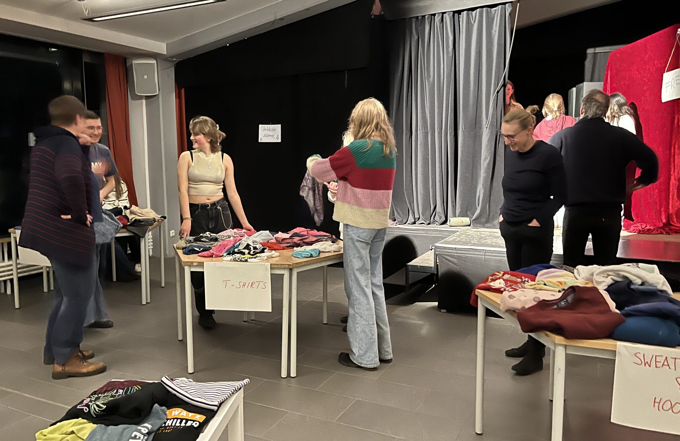 Ab 17 Uhr konnte dann nach Herzenslust geshoppt werden. Alles konnte anprobiert und kombiniert werden. Und so haben doch fast alle Mitmachenden neue Kleidungsstücke für sich entdeckt, welche kostenlos mit nach Hause genommen werden konnten. Und nicht nur das Anprobieren hat Spaß gemacht. Außerdem konnte man kleine Leckereinen an einem Stand des Greenteams erwerben und zum Beispiel in größerer Runde Werwolf spielen.
