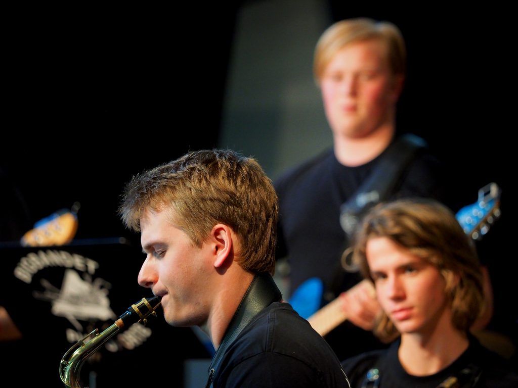Nach Begrüßungseinlagen von body & drum und dem WPU-Kurs Percussion übernahmen die Dänen die Bühne: Toller Sound, coole Riffs, Super-Sänger und -Solisten ersetzten hier den Nachmittagsunterricht, ließen Füße wippen, Hände klatschen und Augen leuchten.