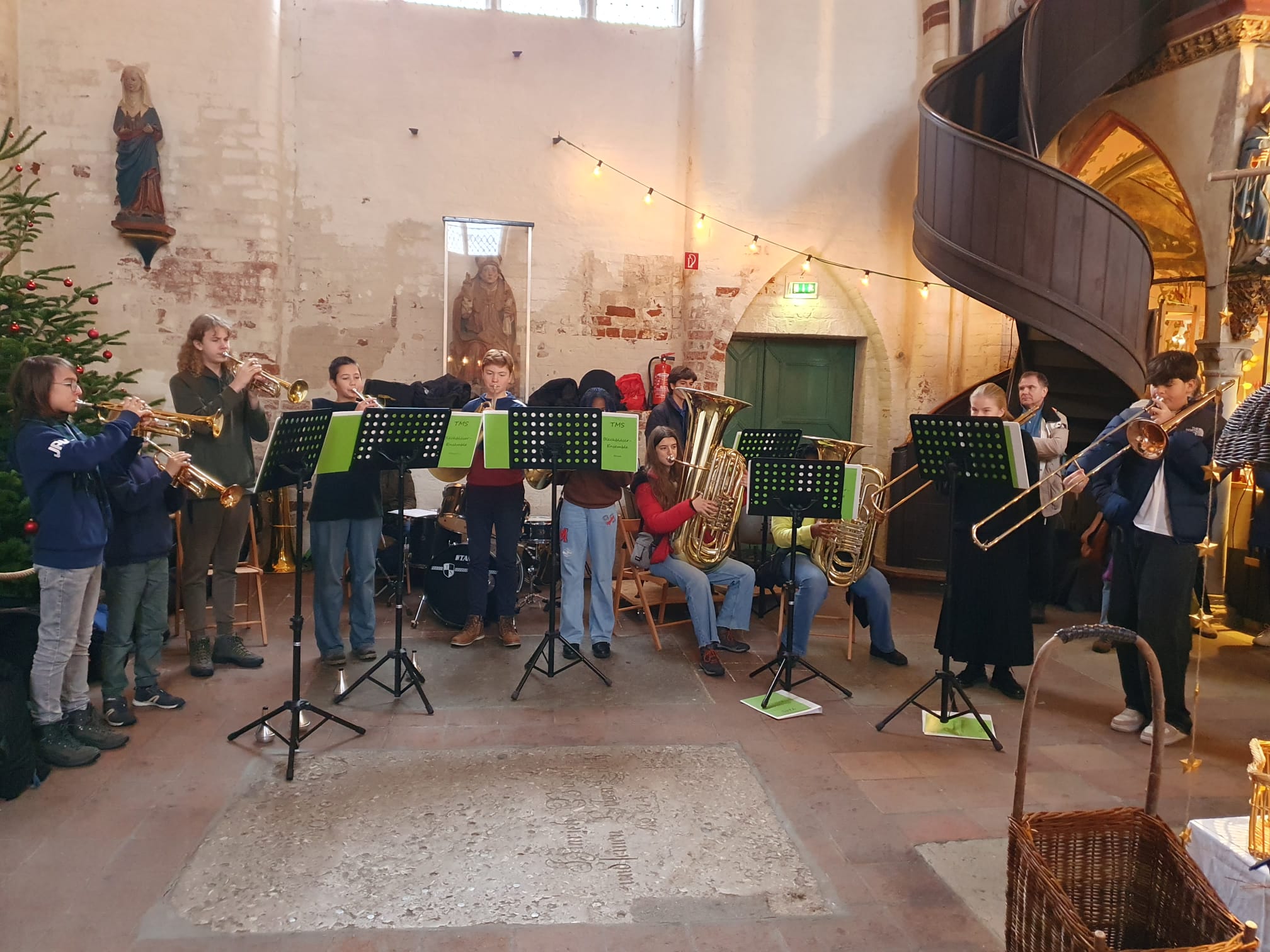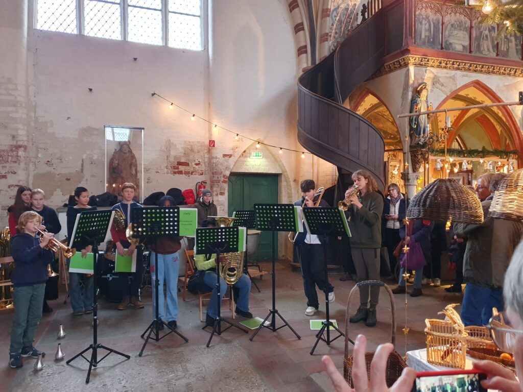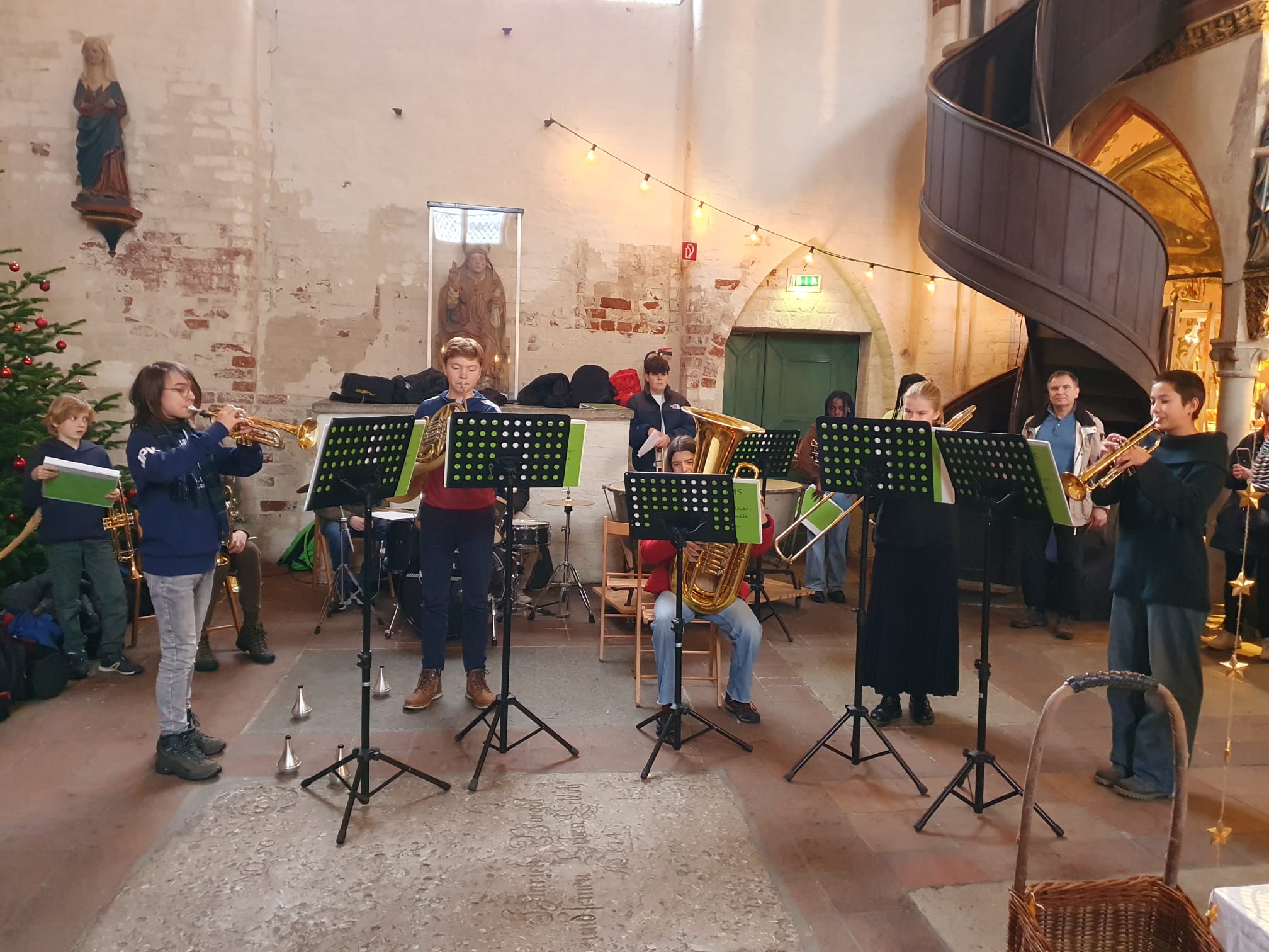 Neben einer Auswahl englischer Weihnachtslieder brachten sie ein Menuett der Feuerwerksmusik von Händel, Nimrod aus den Enigma Variationen von Elgar und den Ungarischen Tanz Nr.5 von Brahms zu Gehör.