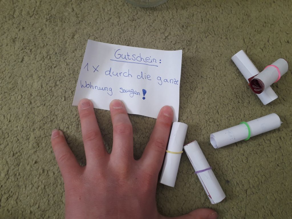 Kawin beschenkte ihre Mutter nicht nur mit einer selbst gestalteten Karte, sondern auch Gutscheinen für Unterstützung im Haushalt. Eine tolle Idee!