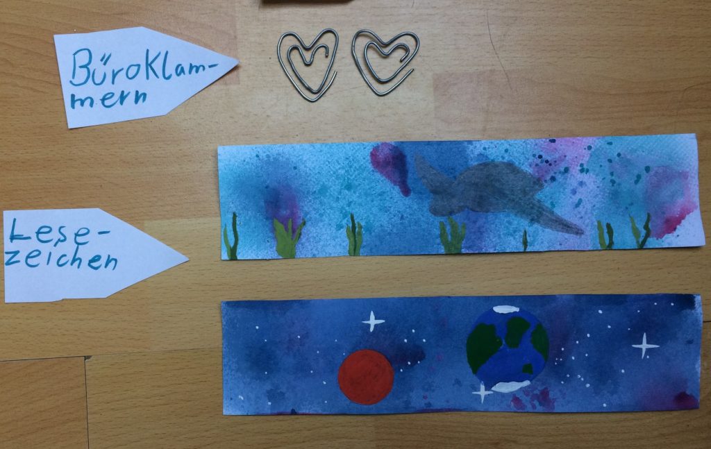 Lesezeichen und Büroklammern in Herzform verschenkte Ella.