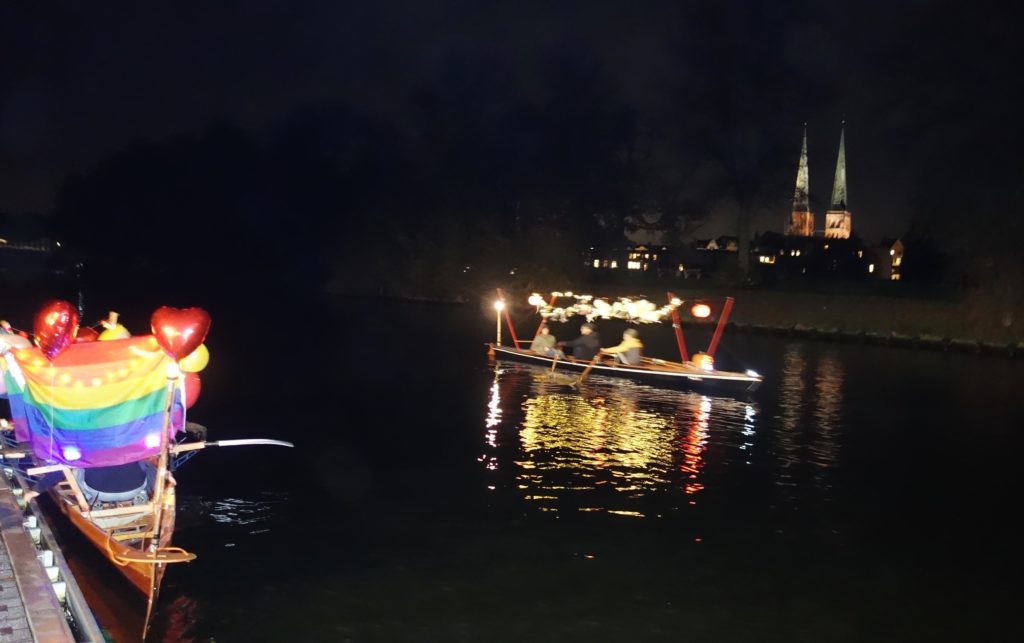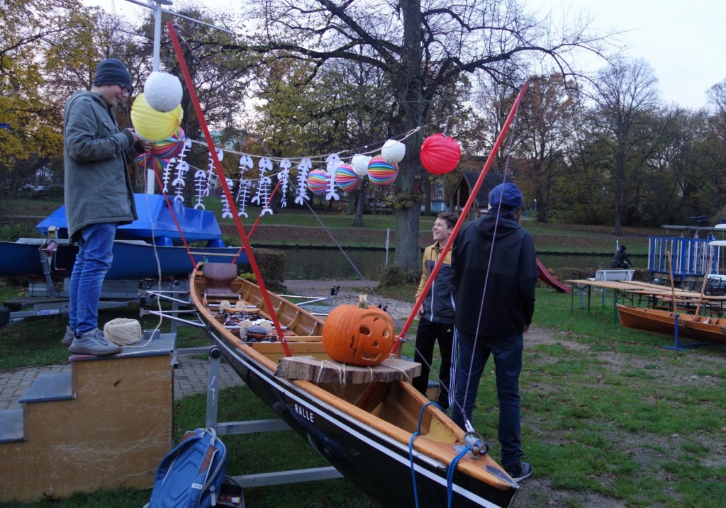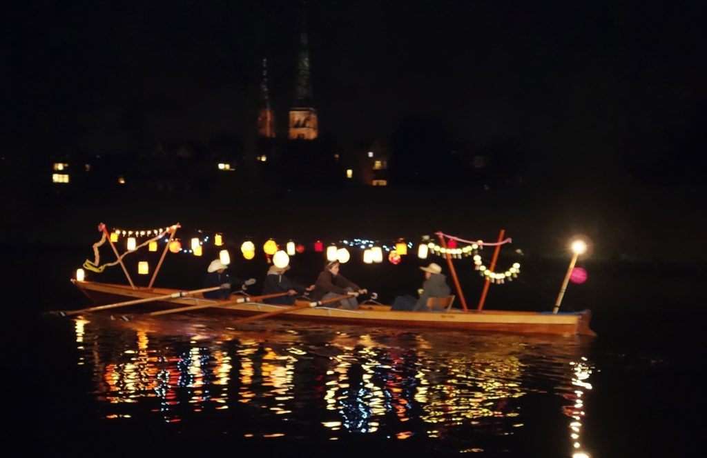 Am 8.11.2019 wurde die Rudersaison offiziell mit der Lampionfahrt beendet. Während nach den Herbstferien die Ruderer noch durch das „Loch“ (engste Brücke in Lübeck zwischen Stadtgraben und Obertrave) fuhren und Mann-über-Bord-Manöver sowie Zielanleger für die praktische Freiruderprüfung übten, war nun Kreativität gefordert. Einige Mannschaften waren zum ersten Mal dabei und wussten noch nicht, wie umfangreich die erfahrenen Ruderer ihre Boote zu dekorieren pflegen. So hatten die Mädchen der TMS das Thema „18. Geburtstag“ gewählt und eine riesige 18 hinter dem Steuermann aufgehängt und vorn einen Schriftzug „Happy Birthday“ montiert.