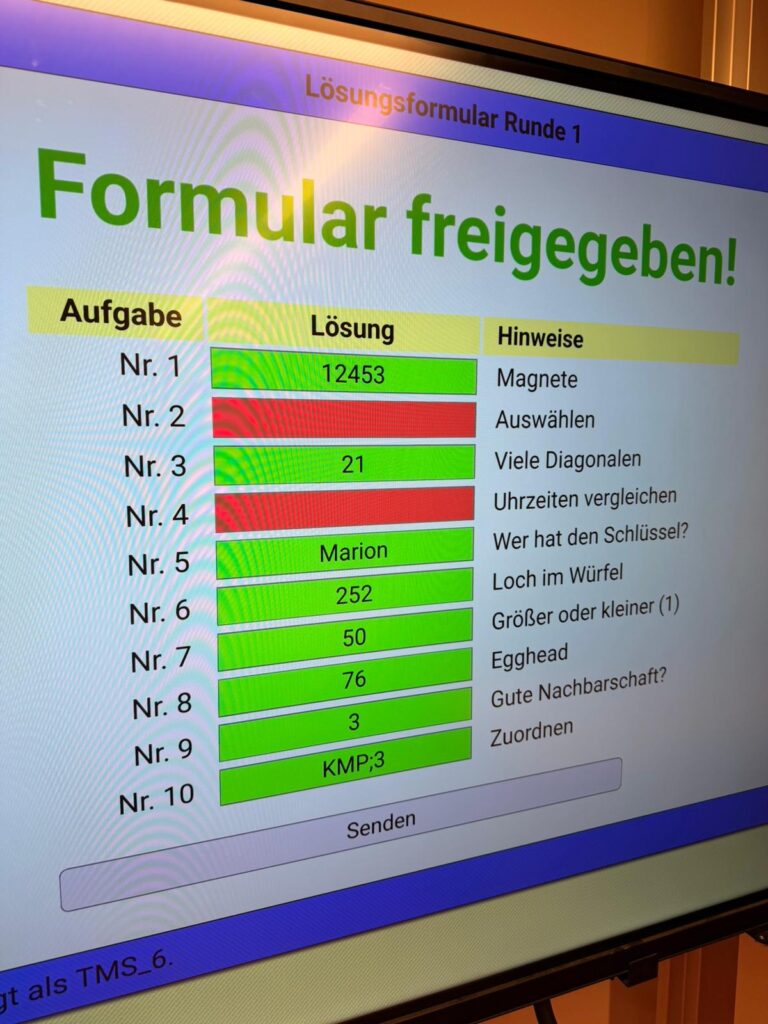 • Die Teams der Klassen 5 und 6 lösten 8 von 10 Aufgaben – eine großartige Leistung!