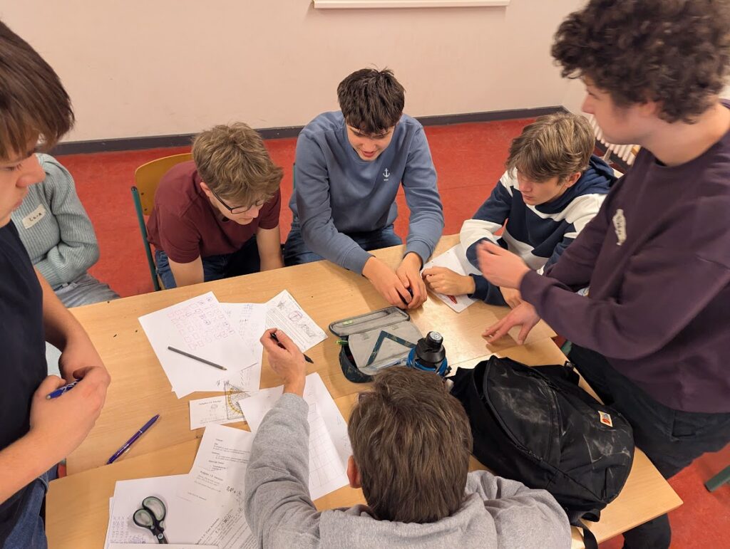 Von 18 Uhr bis tief in die Nacht hinein wurde gerechnet, geknobelt und leidenschaftlich diskutiert. Die Aufgaben hatten es in sich – anspruchsvoll, abwechslungsreich und mit vielen Aha-Momenten. Doch der Spaß kam dabei nie zu kurz. Für die nötige Energie sorgte Frau von Warburg mit ihrem Team und servierte leckere Pizza.