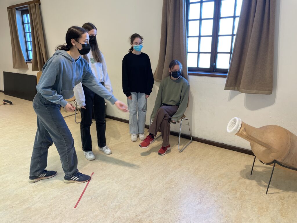 Am zweiten Tag haben wir neben einer Führung zur „Lateinischen Sprache im Museum“ an verschieden Workshops teilgenommen. Wir haben erfahren, welche Spiele Kinder vor 2000 Jahren gespielt haben und sie auch selbst ausprobiert. Darunter war das Knochenspiel, Mühle oder auch das Orkaspiel, bei welchem man Walnüsse in eine Amphore werfen muss.