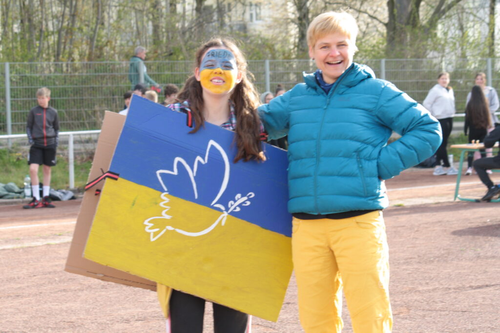 „Ich laufe, weil ich die ukrainischen Flüchtlinge unterstützen und ein Zeichen für den Frieden setzen möchte“, antwortet Jenna auf die Frage, warum sie den Spendenlauf sinnvoll findet. Ihre Kameradinnen Anna und Lea äußern: „Jeder kann einen Beitrag leisten. Es ist ein gutes Gefühl, etwas zu tun.“