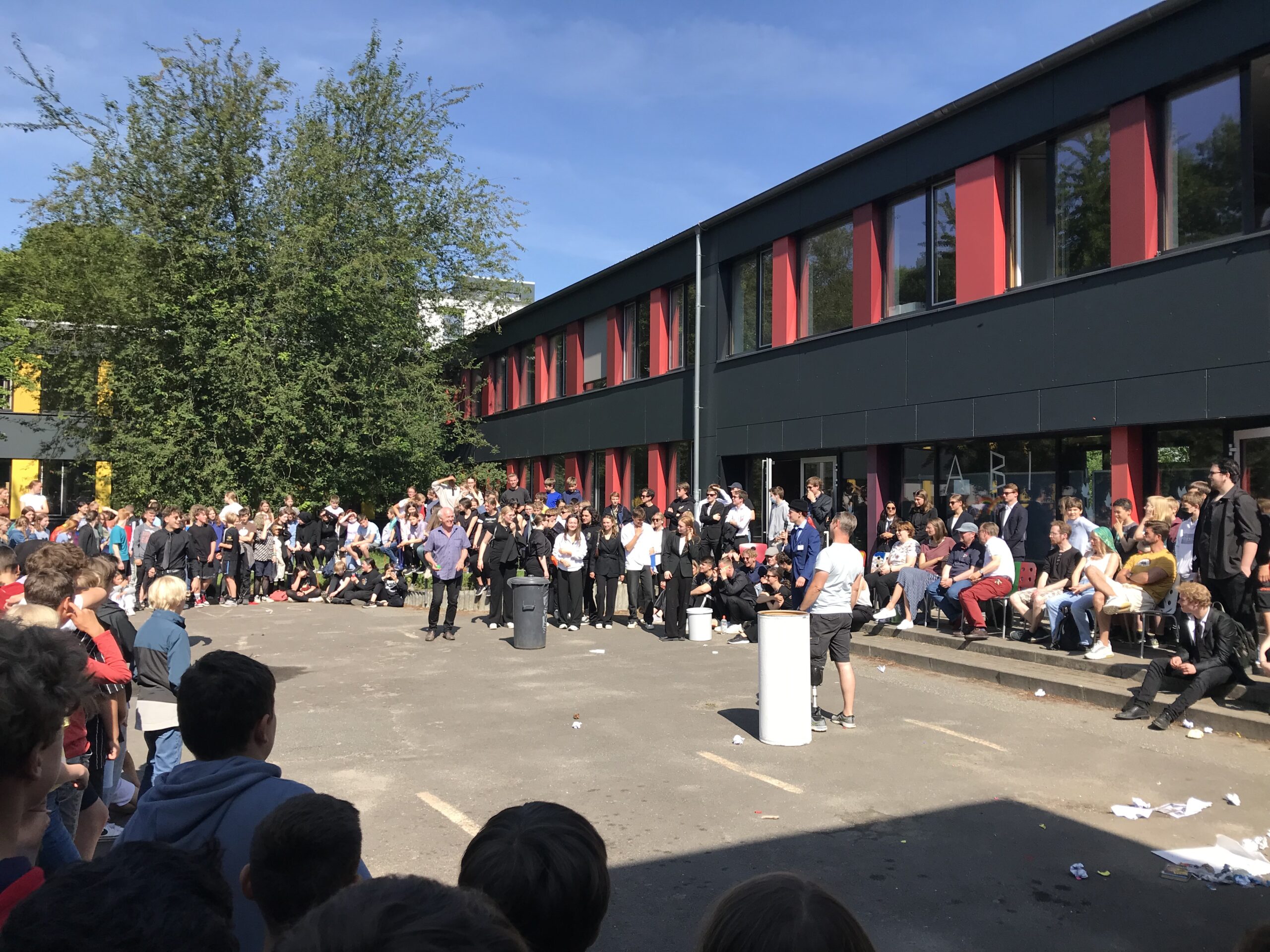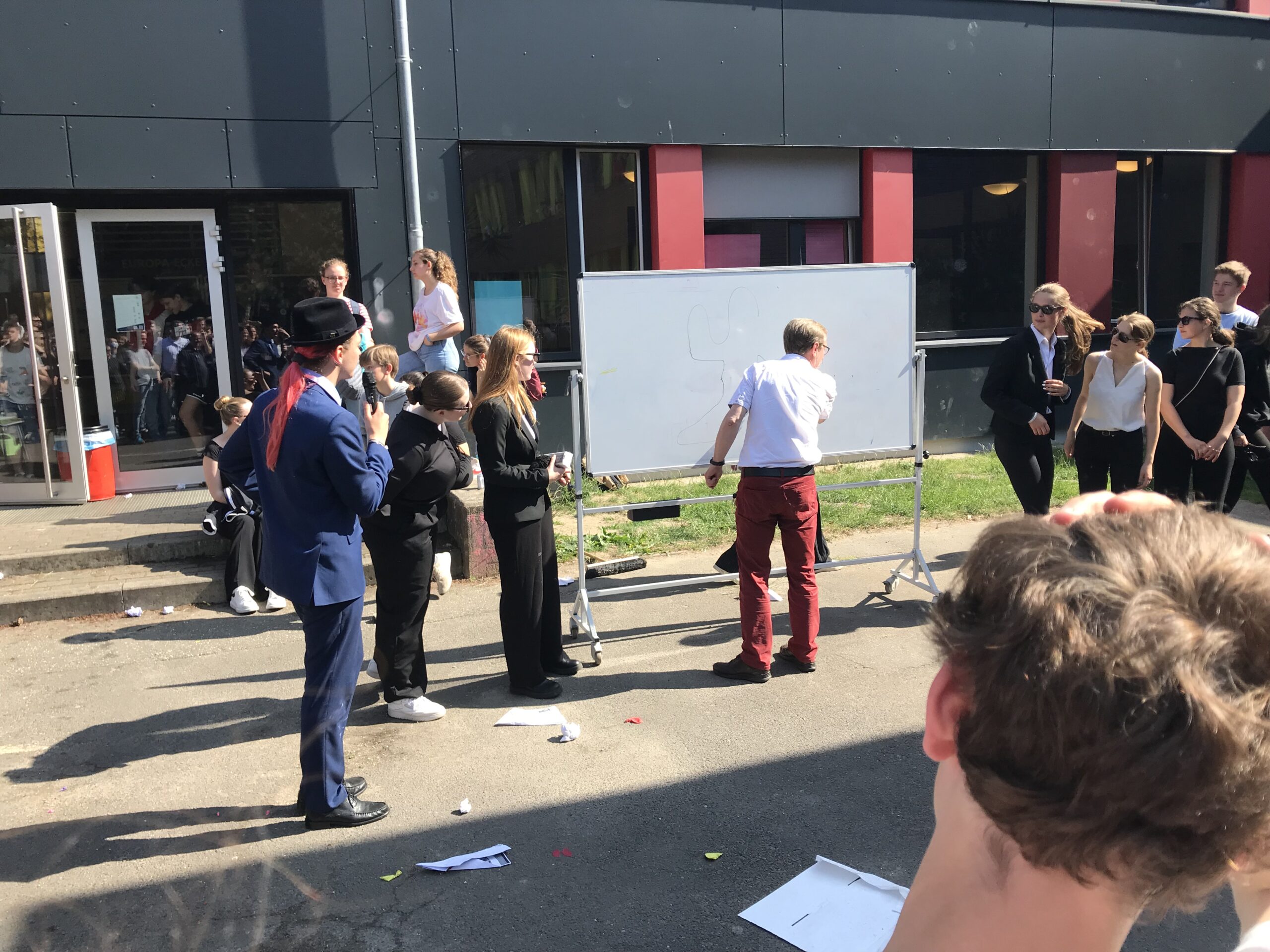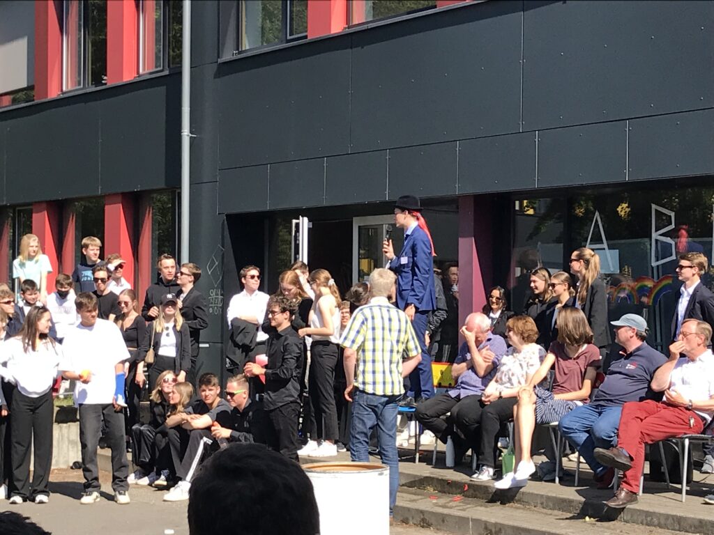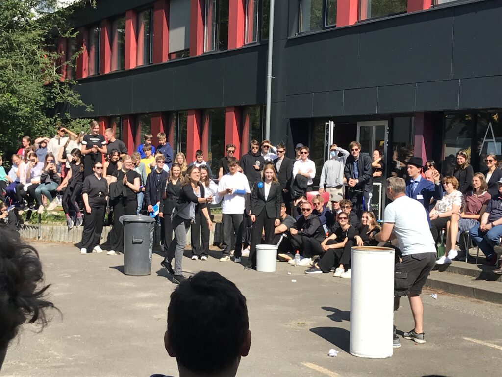 Obwohl dies gelang, empfahl Moderator Jan den übrigen Schülerinnen und Schülern, sich in Sicherheit zu bringen und die Schule zu verlassen. Begeistert wurde der Vorschlag angenommen. „Abitur und Abistreich sind ja jedes Jahr!“, rief Mio aus der 5d fröhlich, bevor er seine Sachen packte und nach Hause ging. Nicht nur für die Fünftklässler war der Abistreich 2022 ein besonderes Erlebnis.