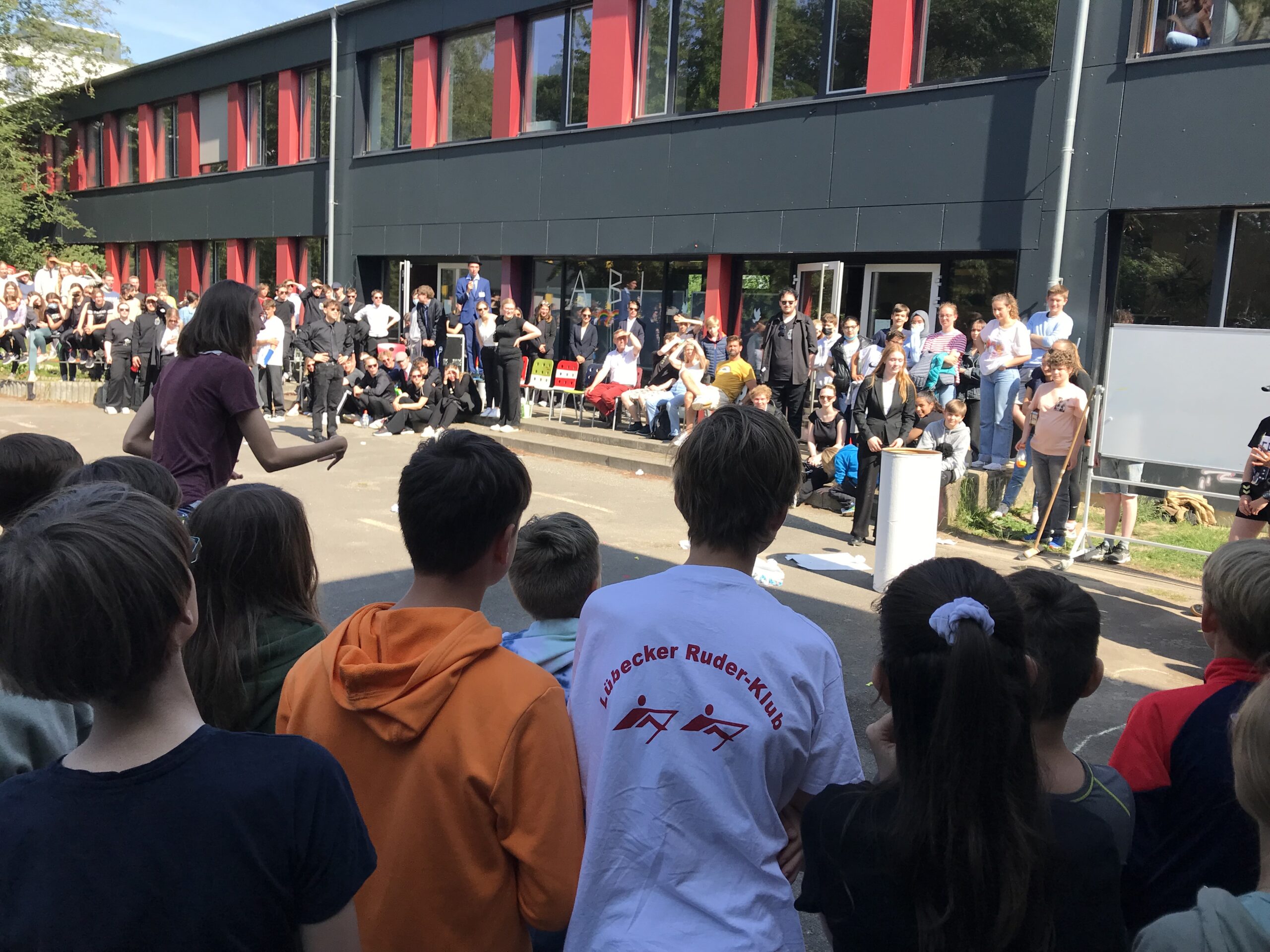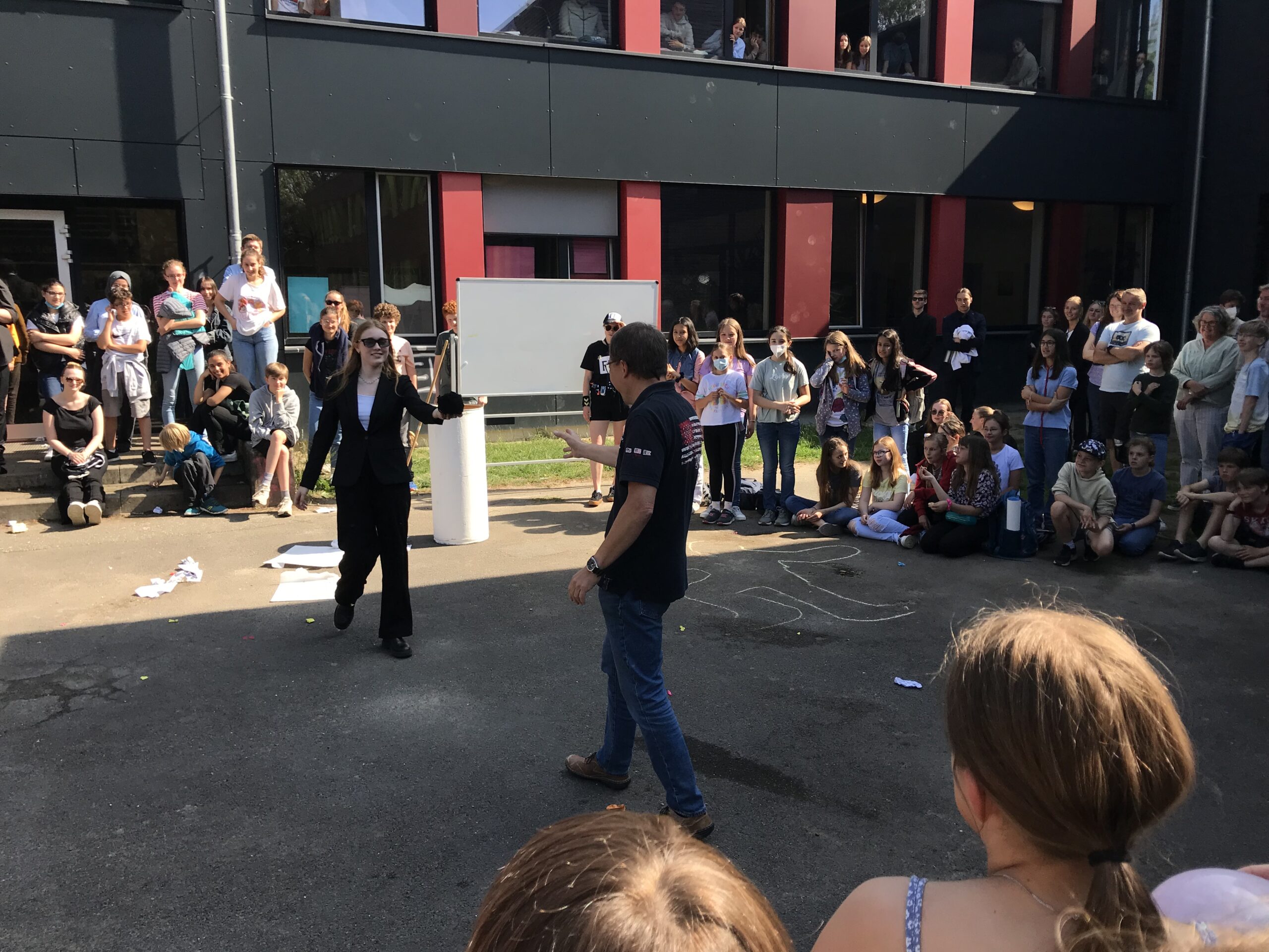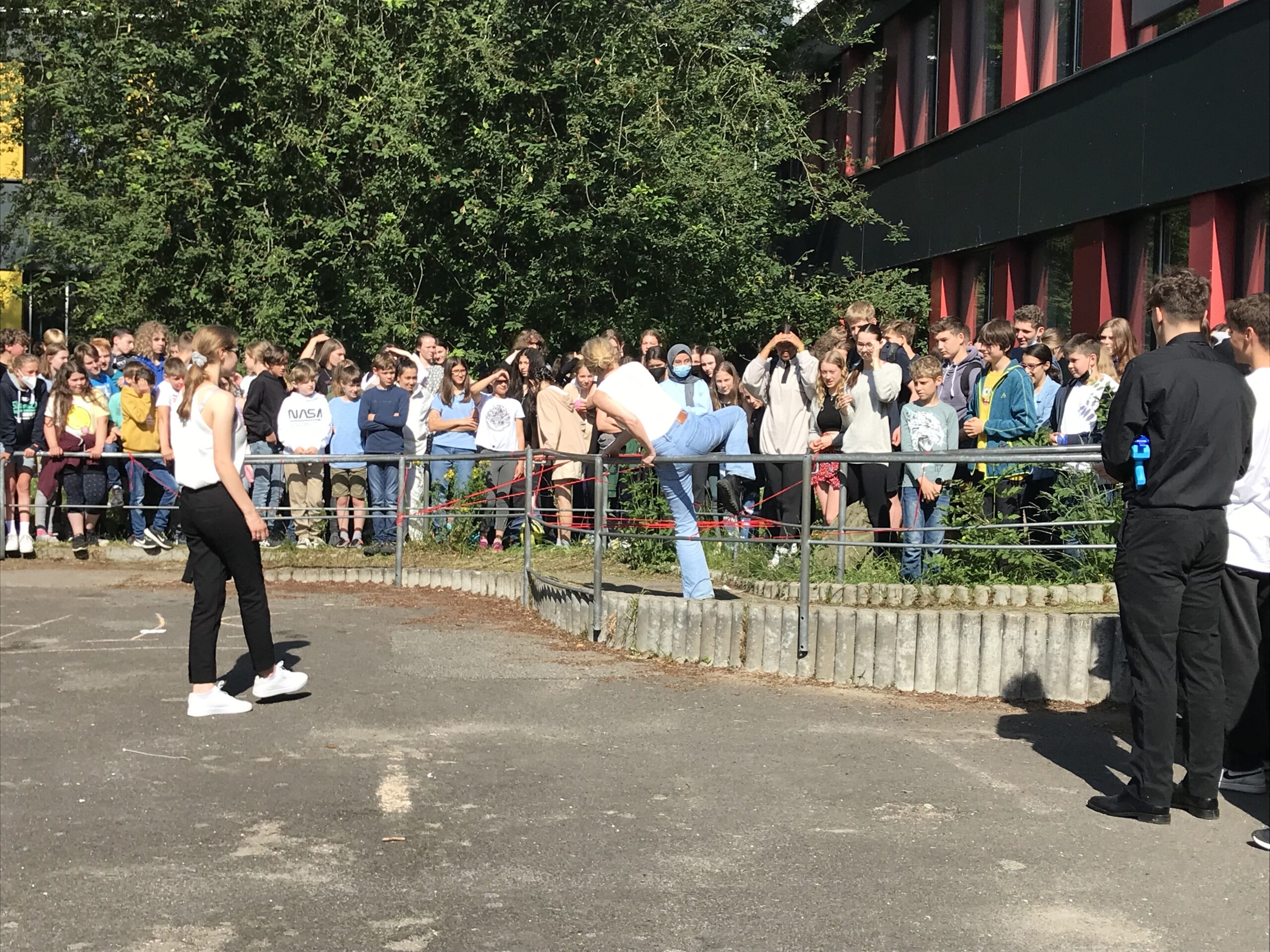 Obwohl dies gelang, empfahl Moderator Jan den übrigen Schülerinnen und Schülern, sich in Sicherheit zu bringen und die Schule zu verlassen. Begeistert wurde der Vorschlag angenommen. „Abitur und Abistreich sind ja jedes Jahr!“, rief Mio aus der 5d fröhlich, bevor er seine Sachen packte und nach Hause ging. Nicht nur für die Fünftklässler war der Abistreich 2022 ein besonderes Erlebnis.