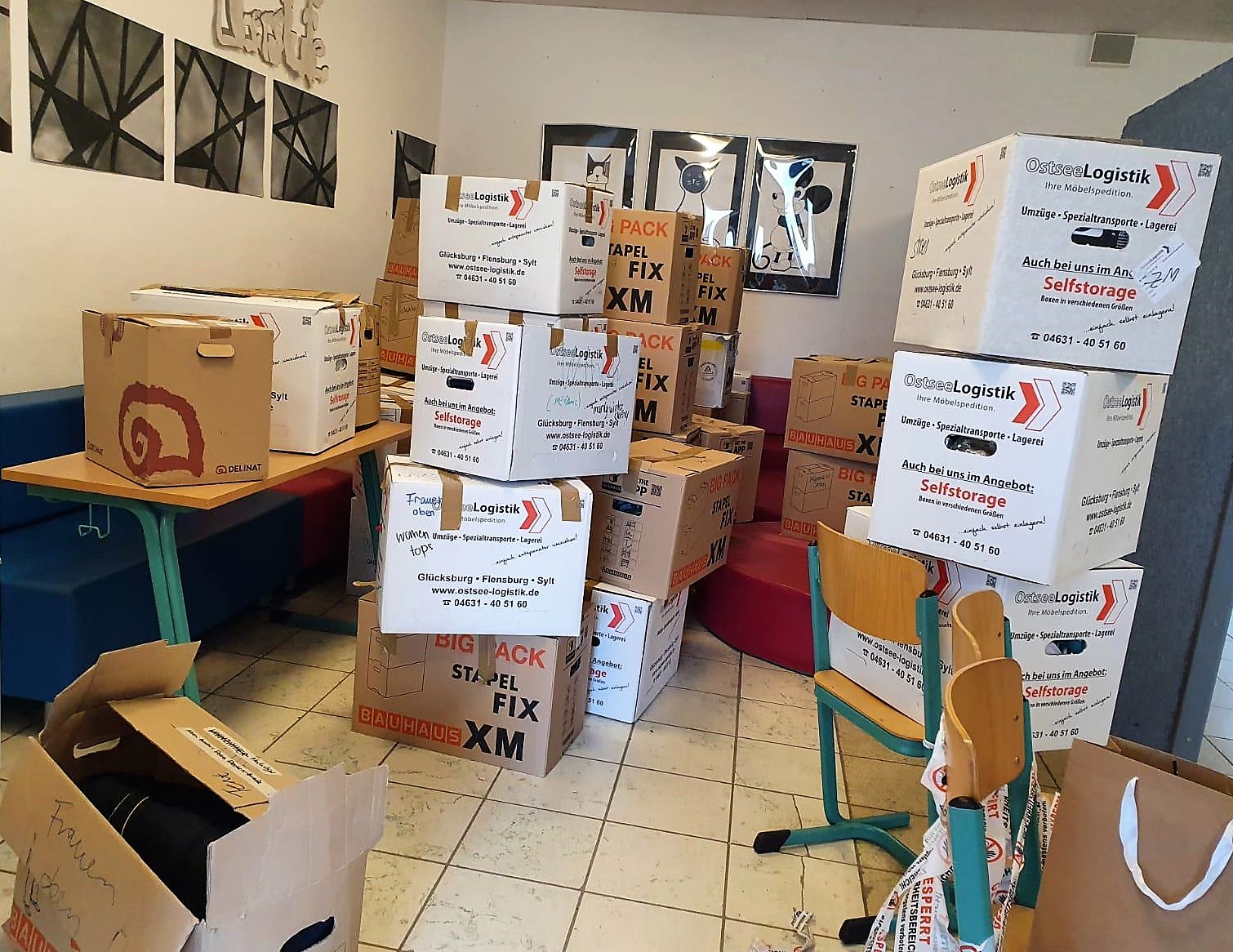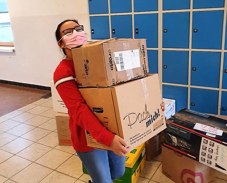 in den letzten Wochen haben wir kontaktlos Spenden vor dem Schulgebäude gesammelt. Diese haben wir nach bestimmten Kategorien sortiert und dann in Kartons verpackt.