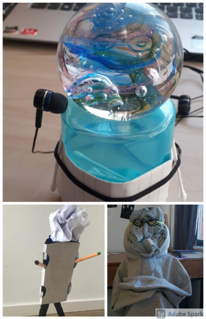 „Ich als Skulptur“- so hieß die erste Aufgabe, für die die Schülerinnen und Schüler 15 Minuten Zeit hatten. Hier sind einige ideenreiche Gestaltungen des eigenen Ichs und was dieses ausmacht zu sehen: