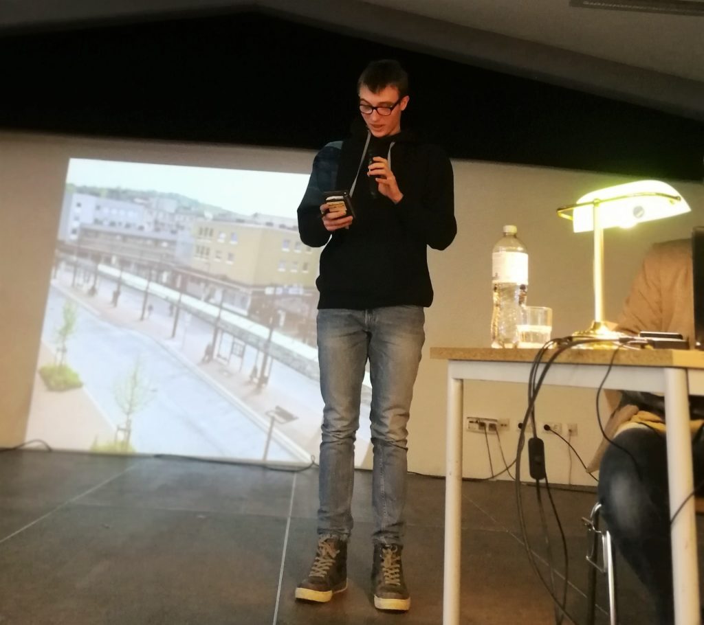 Als Lehrerkind weiß der Dichter, wovon er spricht. Von seiner Idee, selbst einer zu werden, habe er Abstand genommen, als Berufsberater seinem Abiturjahrgang davon abrieten. So erzählt Gsella, der von Anfang an seinem jungen Publikum ganz persönlich begegnet, dass er nach seinem Zivildienst drei Jahre lang als Straßenmusiker gelebt habe, aber immer schon geschrieben und schließlich seinen Weg als Redakteur mit Festanstellung bei der „Titanic“ gefunden habe. Gsella hat diese Entscheidung nicht bereut. Er liebt das Schreiben und seine Existenz als freischaffender Künstler und fragt während der Lesung mehrmals in die Runde, ob er jemanden aus dem Publikum davon überzeugen könne, es ihm nachzutun. Dass gerade der Beginn seiner Schriftstellerkarriere nicht einfach war, verschweigt Gsella nicht. Er erklärt, wie sehr freie Schriftsteller darauf angewiesen seien, Verlage für ihre Texte zu finden, und in welch geringer Auflage Gedichtbände – insbesondere, wenn es sich um komische Lyrik handle – in der Regel publiziert würden.