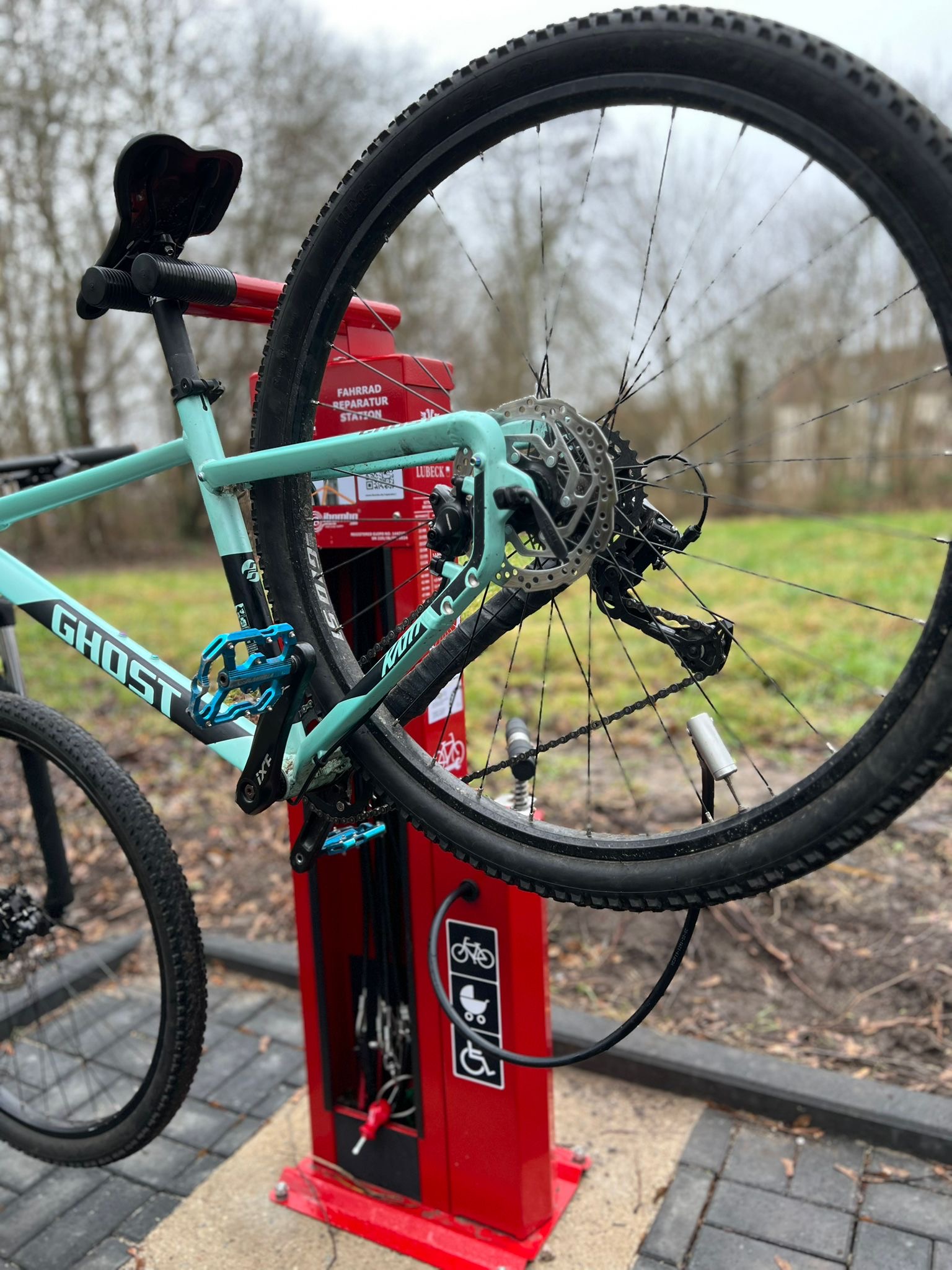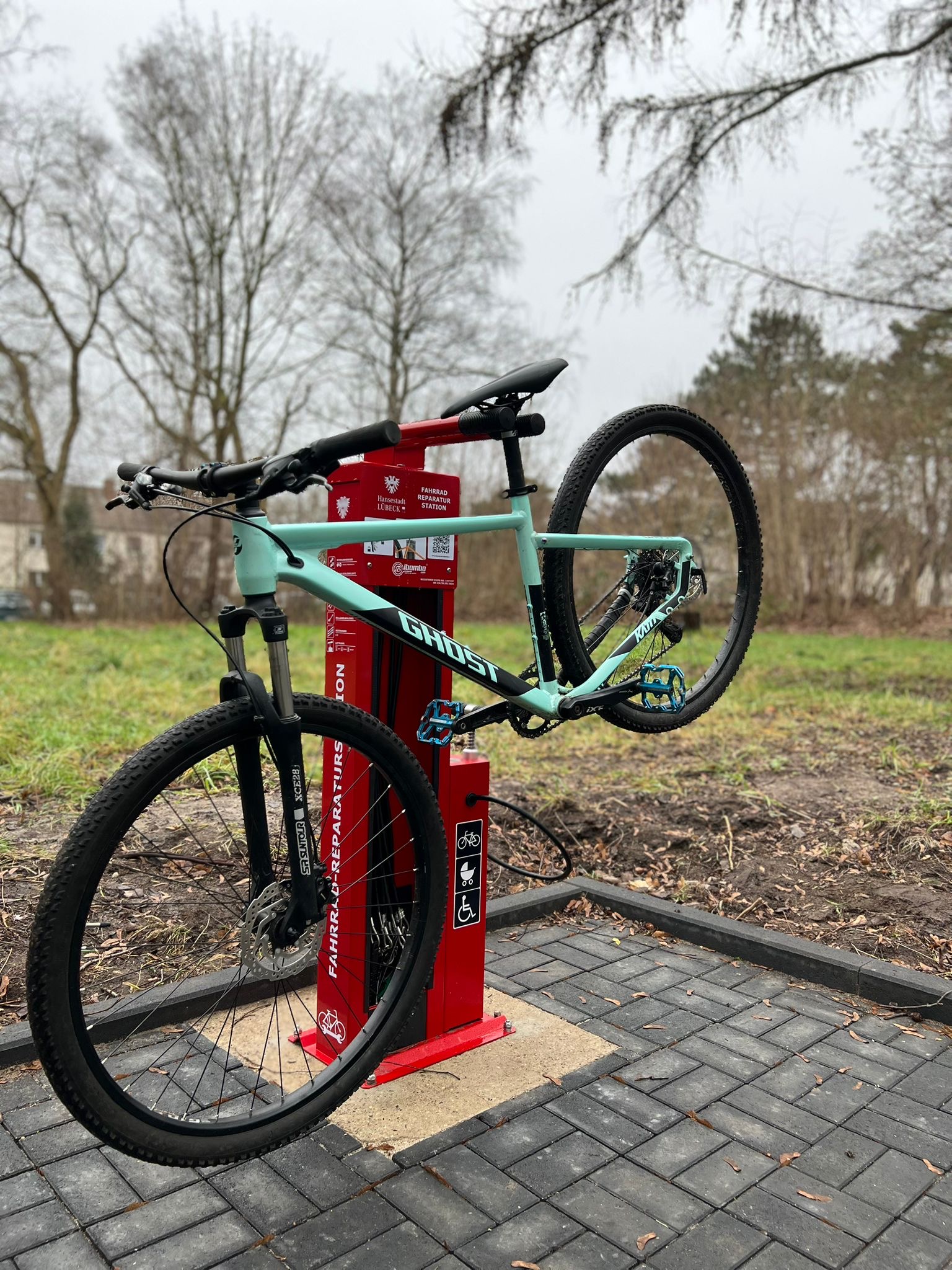 Seit den Weihnachtsferien steht vor dem Schuleingang eine Fahrradstation, in der du Werkzeug findest und eine Luftpumpe. Als Fahrradschule, zu der 95 % der Schülerinnen, Schüler und Lehrkräfte mit dem Rad kommen und die jedes Jahr den Wettbewerb Stadtradeln gewinnt, begrüßen wir diese Einrichtung auf unserem Schulgelände, die natürlich auch den Menschen im Stadtteil zur Verfügung steht.
