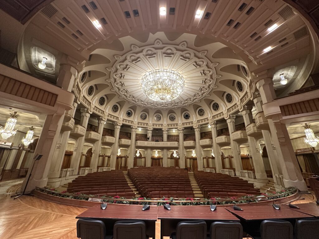 Die imposanten Säle und riesigen Kronleuchter beeindruckten uns ebenso wie die Fassade aus rumänischem Marmor. Die Führung war informativ und kurzweilig, und wir genossen diesen letzten kulturellen Programmpunkt in vollen Zügen.