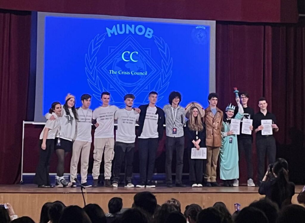 Zurück an der Schule begann am Abend die Closing Ceremony. Delegierte aus den Komitees wurden für ihr besonderes Engagement ausgezeichnet – darunter auch vier Teilnehmer:innen aus unserer eigenen Delegation, die ein „Special Shoutout“ erhielten. Zwischen den Ehrungen präsentierten einige Delegationen kleine Beiträge: Die moldawische Gruppe zeigte einen traditionellen Tanz, die italienische sang Bella Ciao und eine rumänische Schülerin führte einen modernen Tanz auf. Die Verabschiedung der Organisator:innen und die letzten Worte der Präsidentschaft sorgten bei vielen für emotionale Momente – insbesondere, da es für einige von ihnen die letzte MUN war.