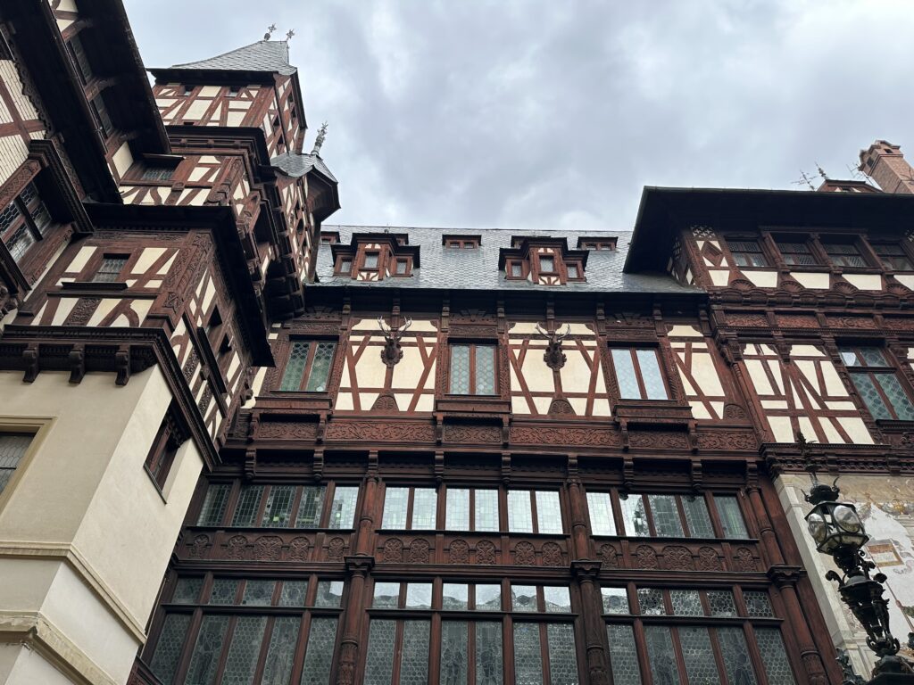 Am folgenden Tag, dem Mittwoch, stand ein Ausflug in die Karpaten auf dem Programm. Früh am Morgen starteten wir mit dem Bus in die Berge, wo unser erster Halt das prachtvolle Schloss Peleș war – die ehemalige Sommerresidenz des rumänischen Königshauses. Besonders beeindruckend war nicht nur die historische Architektur, sondern auch die technische Ausstattung des Schlosses: Schon in den 1880er Jahren verfügte es über fließendes Wasser, elektrische Beleuchtung und einen Telefonanschluss. Die aufwendig gestalteten Innenräume aus dunklem Holz erinnerten stark an deutsche Vorbilder, von denen sich die Bauherren seinerzeit inspirieren ließen.