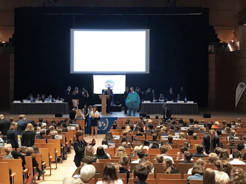 Dienstag ging es mit der Opening-Ceremony in der MuK dann offiziell los. Dort wurden viele Begrüßungsreden gehalten und der „President of the general Assembly“ eröffnete die Konferenz. Die Botschafter der einzelnen Länder hielten dann jeweils eine kurze Rede für ihr Land.