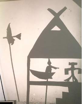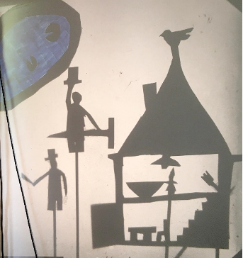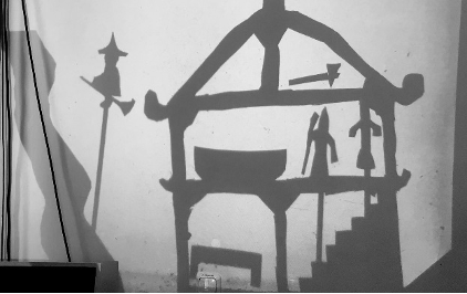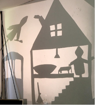 Das Schattenspiel wurde anschließend von den jeweiligen Gruppenmitgliedern am Overheadprojektor mit musikalischer Untermalung vorgeführt und aufgezeichnet.