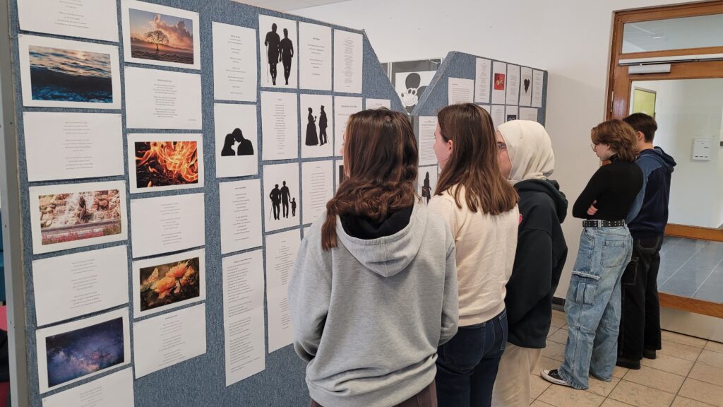 Mit einer kleinen Ausstellung im Oberstufentrakt versuchen wir es. Der heilige Valentin selbst hätte sicher nichts dagegen gehabt. Der Legende nach soll er heimlich Liebespaare getraut haben – entgegen den strengen Konventionen seiner Zeit, um der Liebe willen. Die gesammelten Texte enthalten „lauter Zeichen der Liebe und Gegenliebe, die aus dem Herzen kommen“ (Augustinus). Manche Worte werfen aber auch Fragen auf oder lassen erkennen, wie zerbrechlich Liebe sein kann. Zwischen den Texten findet ihr Silhouetten von Menschen. Sie alle lieben auf ihre ganz eigene Weise. Lest die Texte – an welche Art von Liebe denkt ihr?