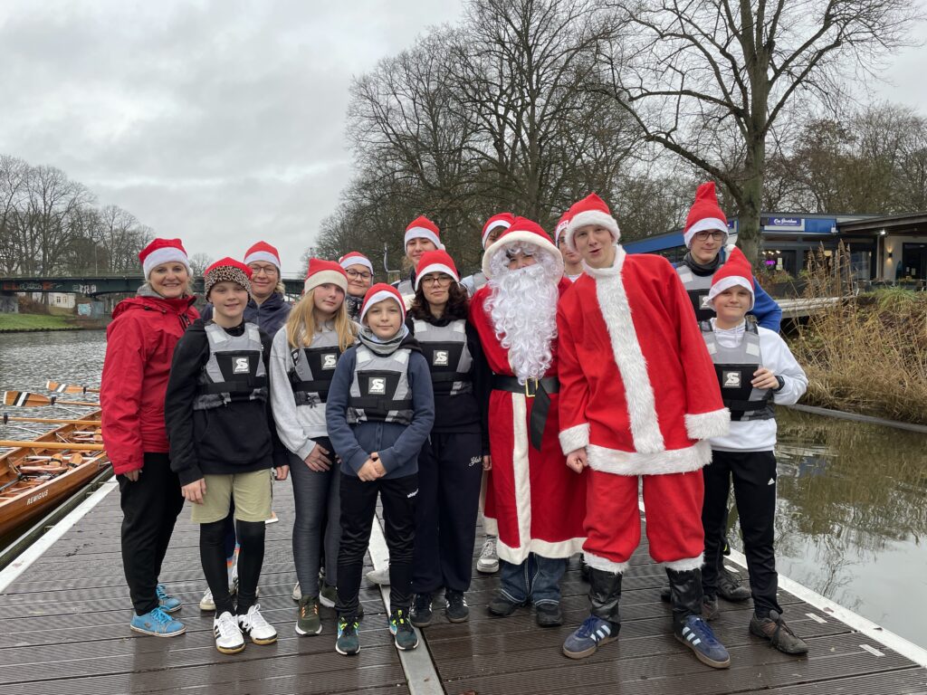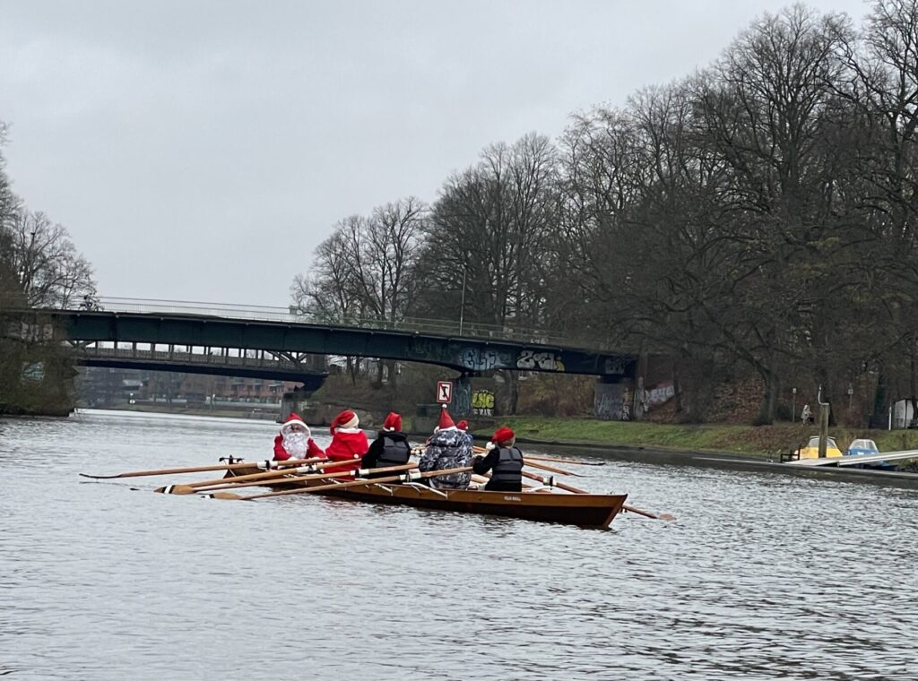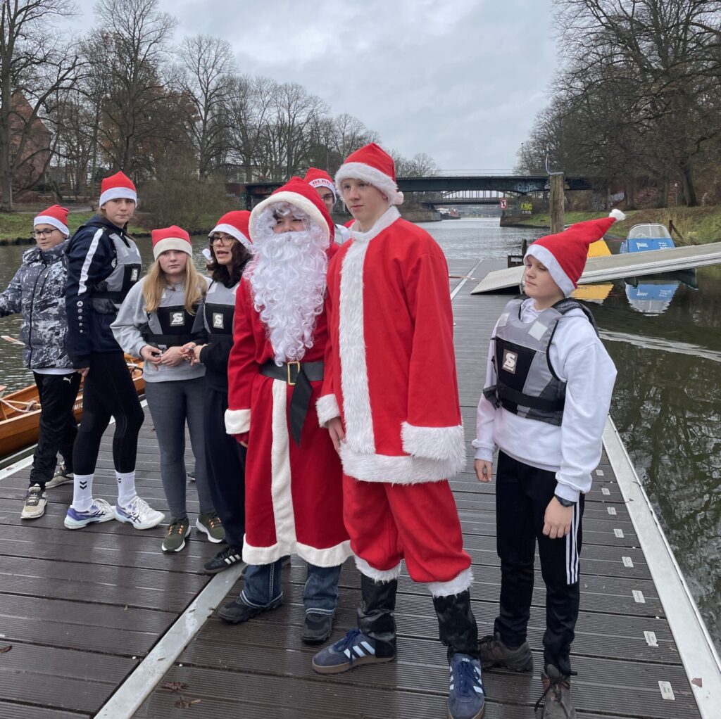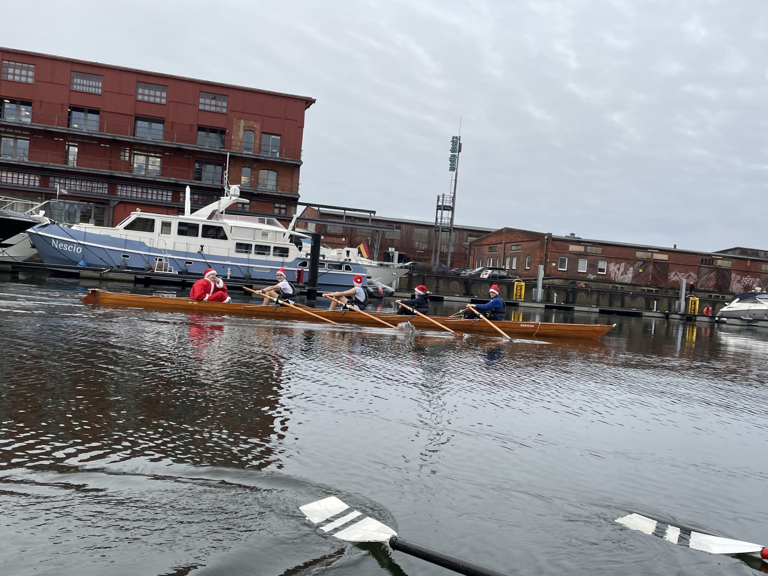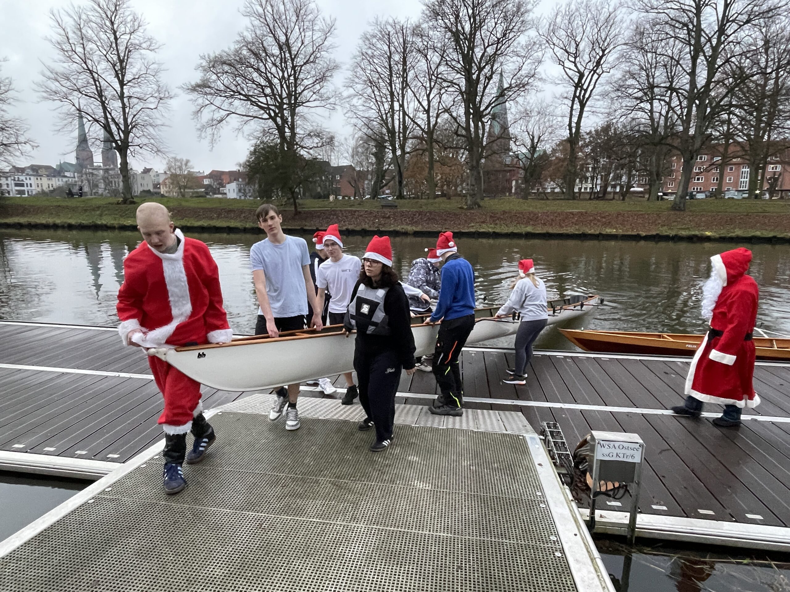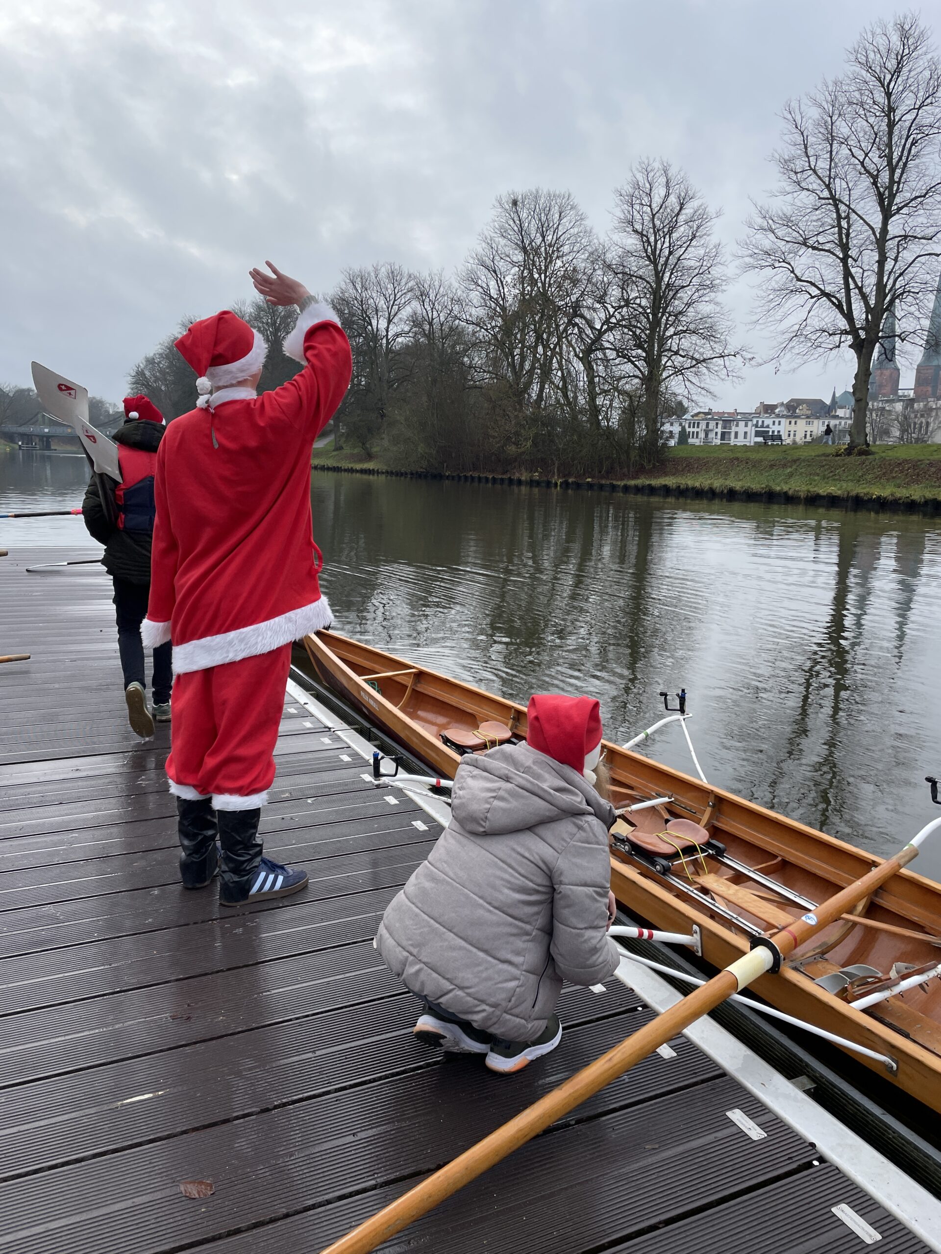 Am 9.12.25 war es wieder soweit und die Nikoläuse der Lübecker Ruderriegen trafen sich zum gemeinsamen Nikolausrudern am Bootssteg der LRG. Die meisten Ruderinnen und Ruderer kamen mit einer roten Mütze und die Steuerleute der Vierer der TMS waren sogar mit einem kompletten Weihnachtsmannkostüm ausgestattet.