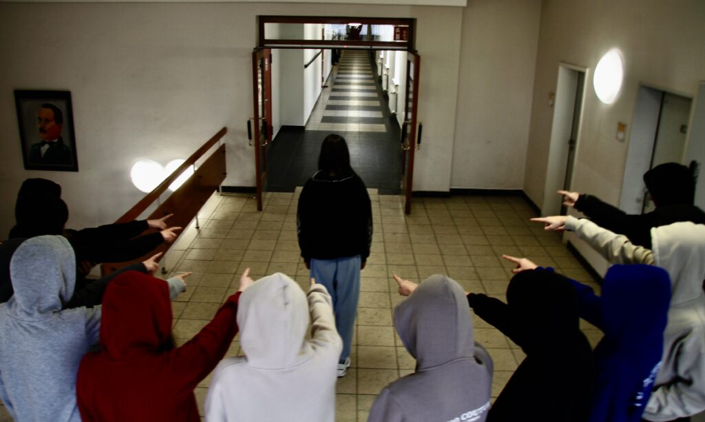 „Was habt ihr euch nur dabei gedacht?!?“ Kurz zuvor saßen wir, die 9c der TMS, noch ganz gewöhnlich im Unterricht, doch nun steht auf einmal anstatt unser Lehrerin eine Polizistin vor der Tafel. Bei uns in der Klasse soll es einen schwerwiegenden Fall von Cybermobbing gegeben haben. Zunächst sind einige schockiert, doch schnell stellt sich heraus, dass es sich bei der angeblichen Polizistin, die uns gerade noch unsere Handys abnehmen wollte, glücklicherweise nur um eine Schauspielerin handelt. Ihr Name ist Janina Blohm-Sievers und im Laufe des Theaterstückes „Out-Gefangen im Netz“, das sie ganz alleine spielt, schlüpft sie in die Rollen der verschiedensten Charaktere, von hinterhältigen Mitschülern über desinteressierte Lehrer bis hin zu überforderten Eltern.