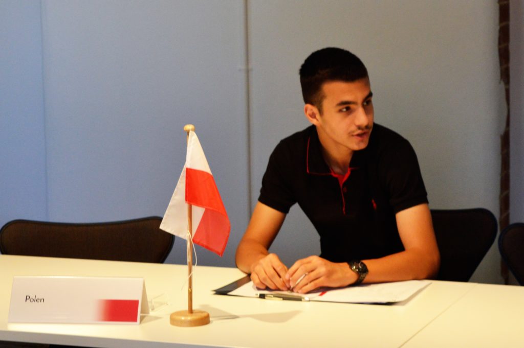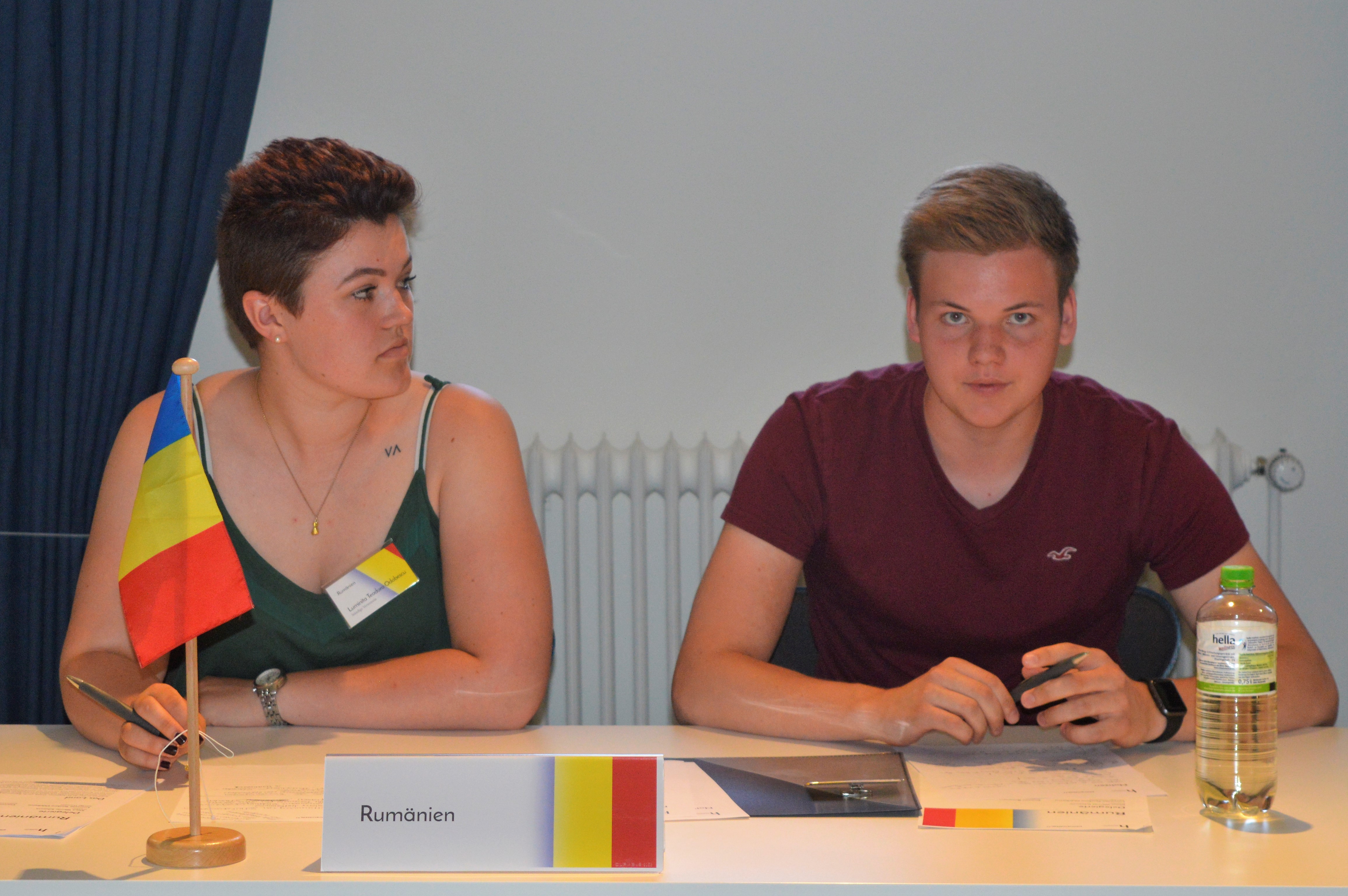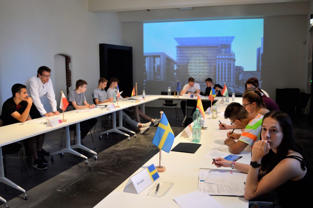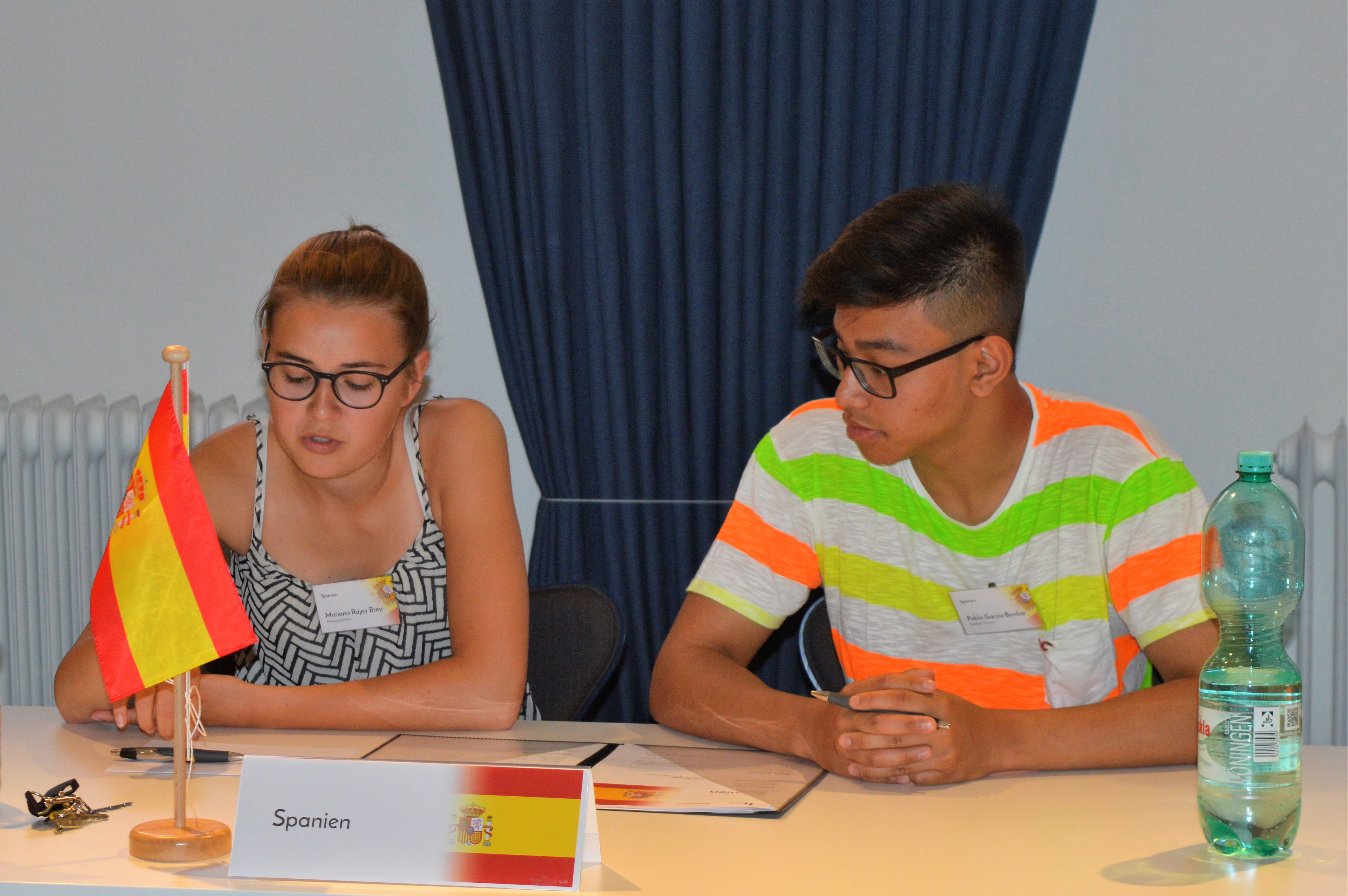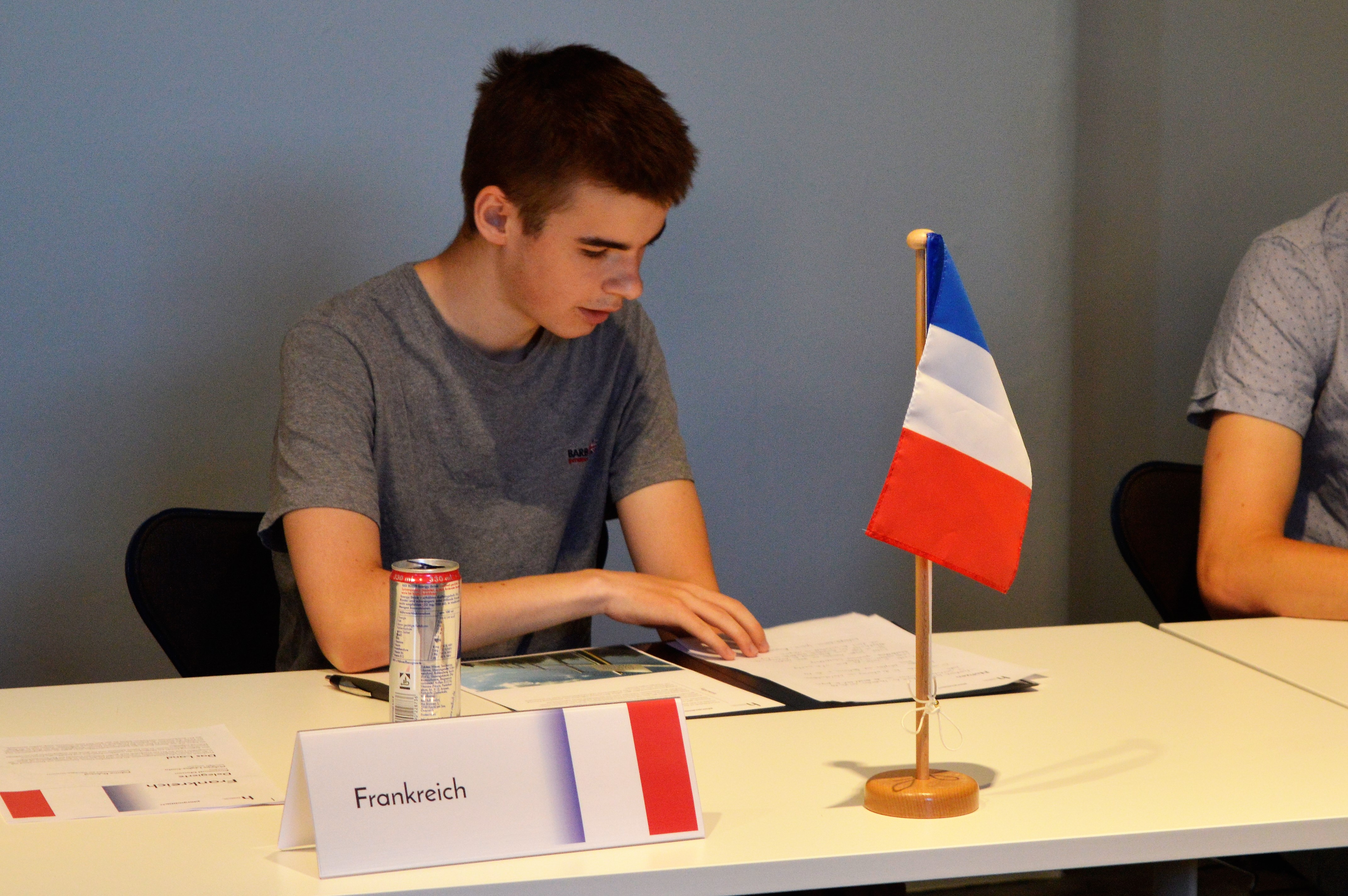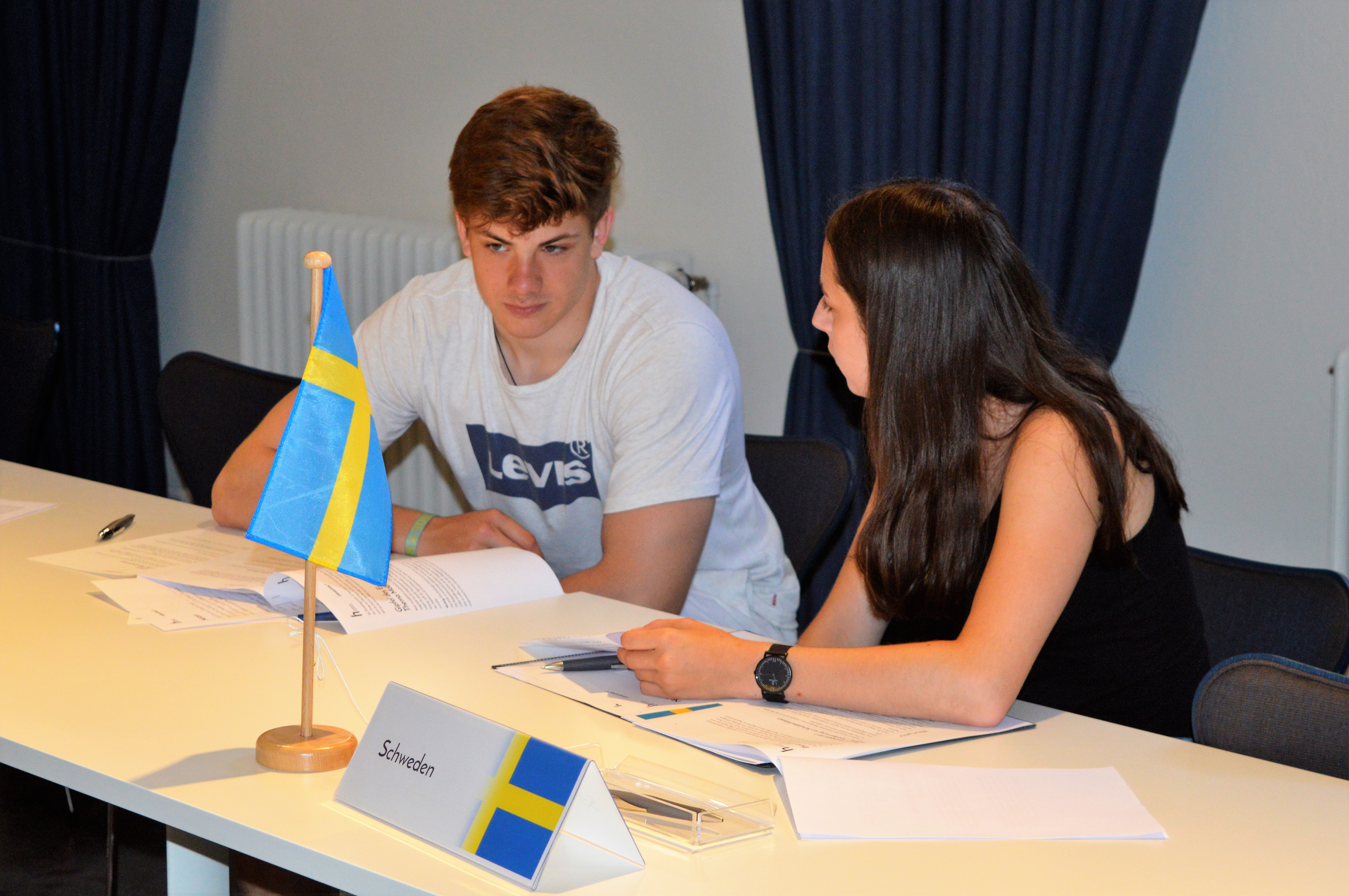 Zunächst erhielten die Schülerinnen und Schüler per Zufallsprinzip einen Staat und die Rolle des jeweiligen Regierungschefs zugeteilt. Dann beschäftigten sich die Teilnehmer mit der Position ihres Landes zu zwei aktuellen Themen.