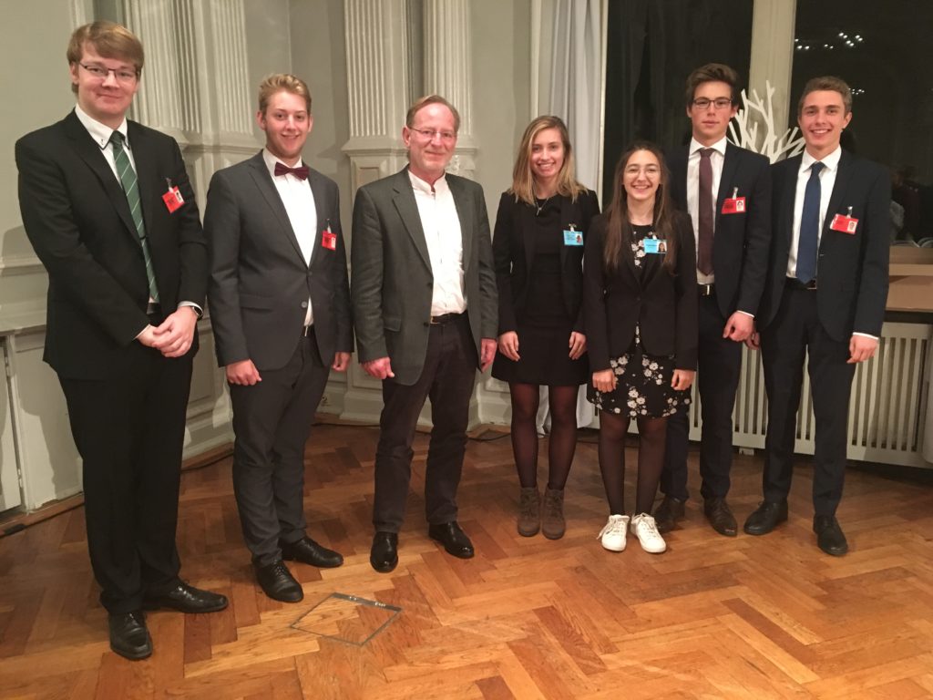 Im Rahmen der Reihe mittwochsBILDUNG der Gemeinnützigen hat sich am vergangenen Mittwoch das Executive Team von MUNOL 2019 vorgestellt. Zum Team gehören Amelie Dresel, Beyza Günsür, Johannes Willert, Lars Machinia und Niklas Meyer. Unterstützt wurden sie von Leonard Roemer, der im letzten Jahr zum Team gehörte.