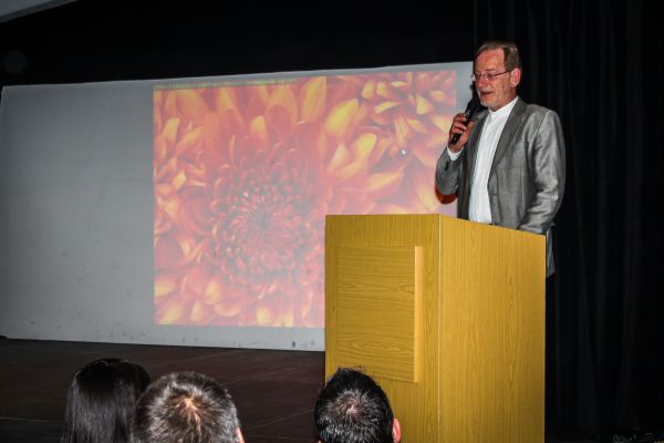 Schließlich betont auch Frau Riedel in ihren Grußworten die Bedeutung von Sprachen und gibt kleine Einblicke in ihre Sprachkenntnisse, indem sie die Anwesenden in diversen Sprachen begrüßt.
