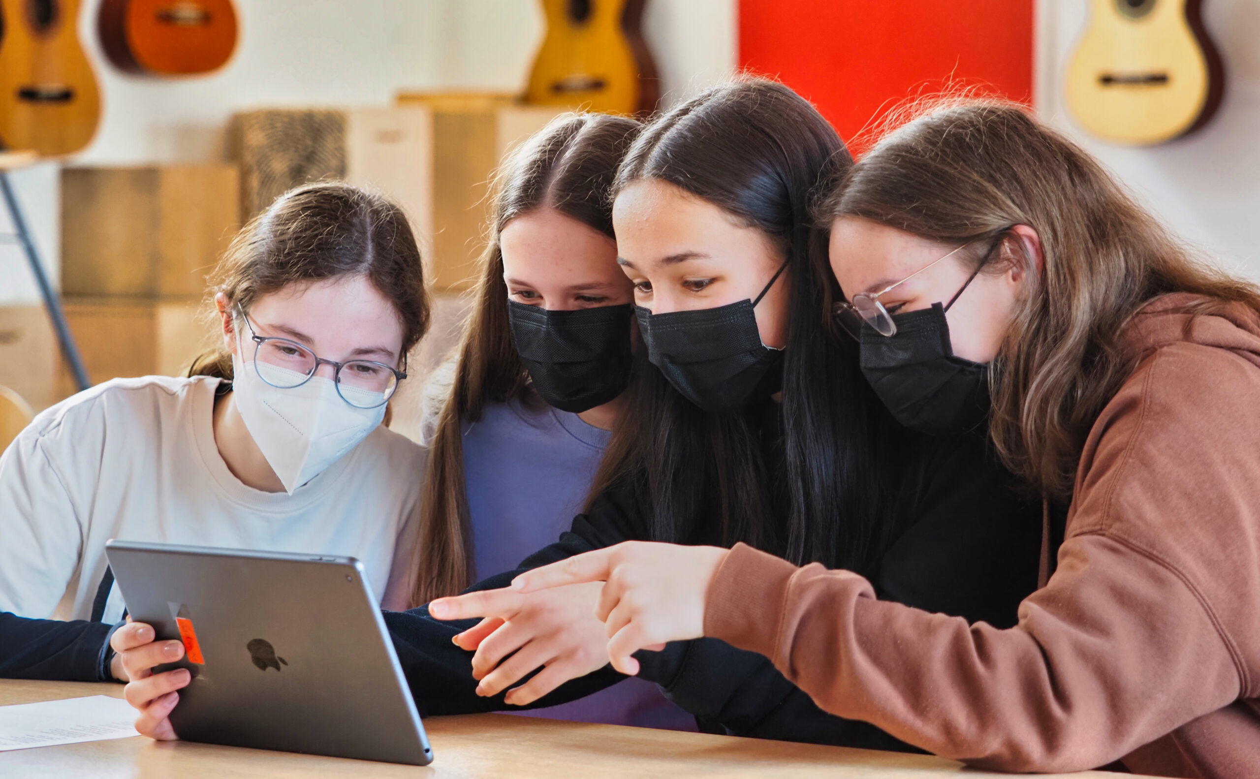 Der Musikkurs des E- Jahrgangs und die Klasse 8a haben bei dem internationalen Future Songwriting Projekt mitgemacht. Vor ca. fünf Wochen haben wir begonnen in kleinen Gruppen mit dem Musikprogramm Garage Band unsere eigenen Songs zu produzieren. Wir bekamen professionelle Unterstützung von drei Musikstudentinnen der Musikhochschule zu Lübeck.