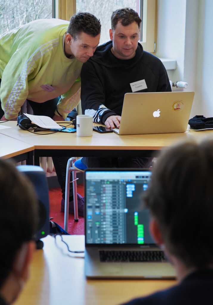 Angefangen hat es damit, erstmal eine Idee für das Thema des Songs zu finden. Danach ging es um die Akkorde und ab dann ging es eigentlich ziemlich schnell. Sobald die Grundmelodie fertig war, musste natürlich noch ein Text her. Diesen zu schreiben und dann natürlich auch einzusingen, war für die meisten Gruppen die größte Herausforderung.