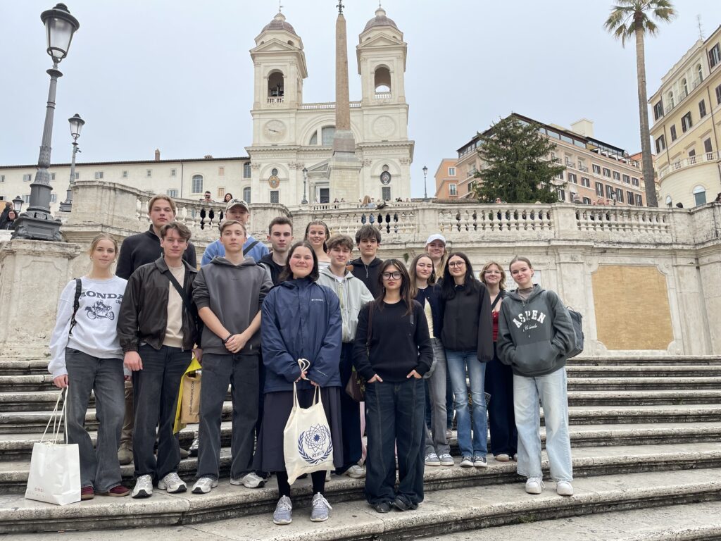 Nach unserer Ankunft in Rom fuhren wir direkt zum Liceo Farnesina, wo wir uns registrierten und unsere Unterlagen abholten. Dazu gehörten ein Stoffbeutel, eine Wasserflasche und ein T-Shirt. Danach wurden wir von unseren Gastfamilien abgeholt und zu unseren Unterkünften gebracht.
