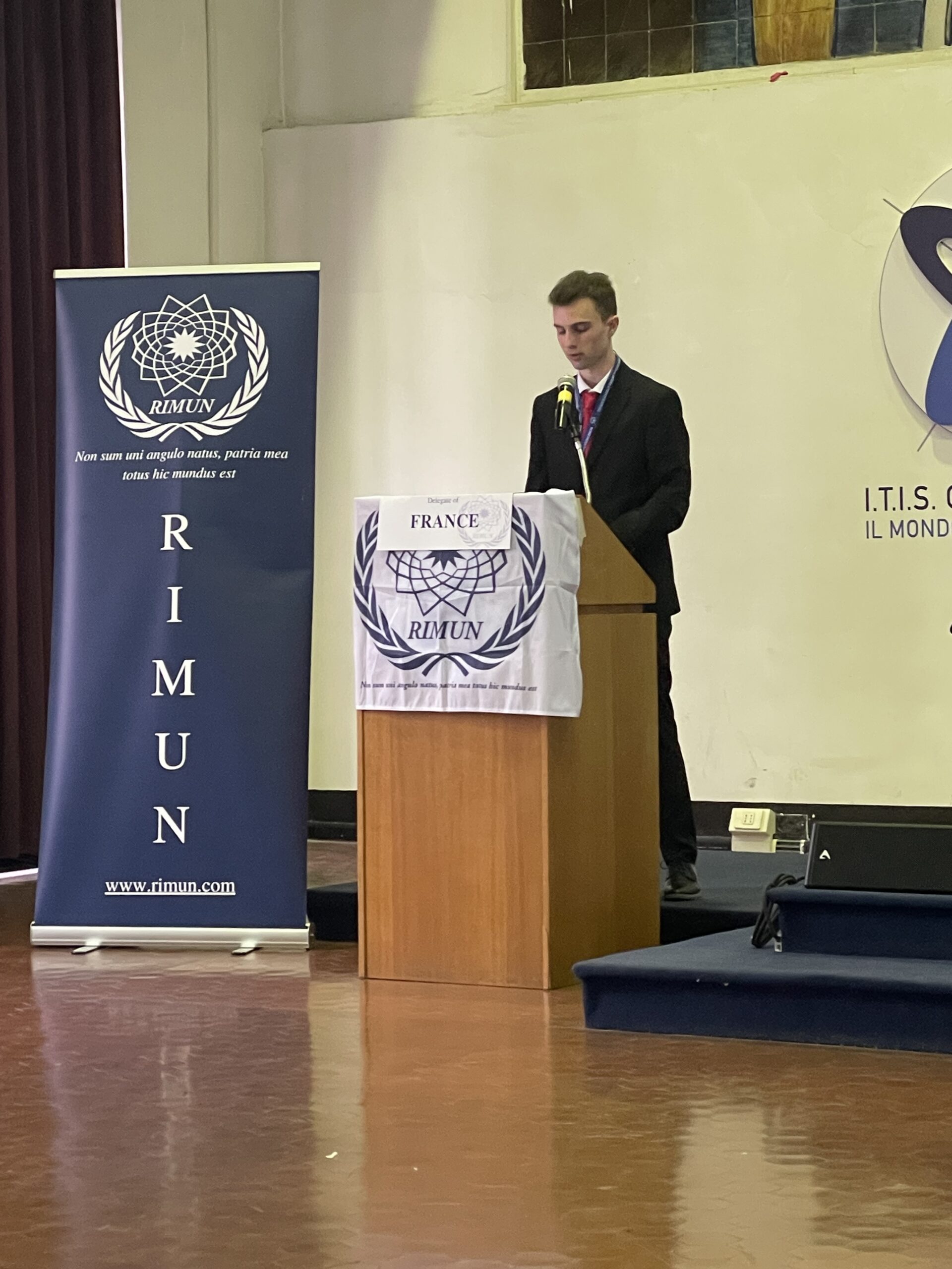 Am Donnerstag, dem 28. März, fand dann die offizielle Eröffnungsfeier statt. Es gab musikalische Beiträge und Reden von den Organisatoren sowie von eingeladenen Gästen. Außerdem wurde das Sekretariat vorgestellt, und die Botschafter einiger Länder hielten ihre Eröffnungsansprachen. Einer unserer Delegierten, Lucas Stübs, sprach für Frankreich.