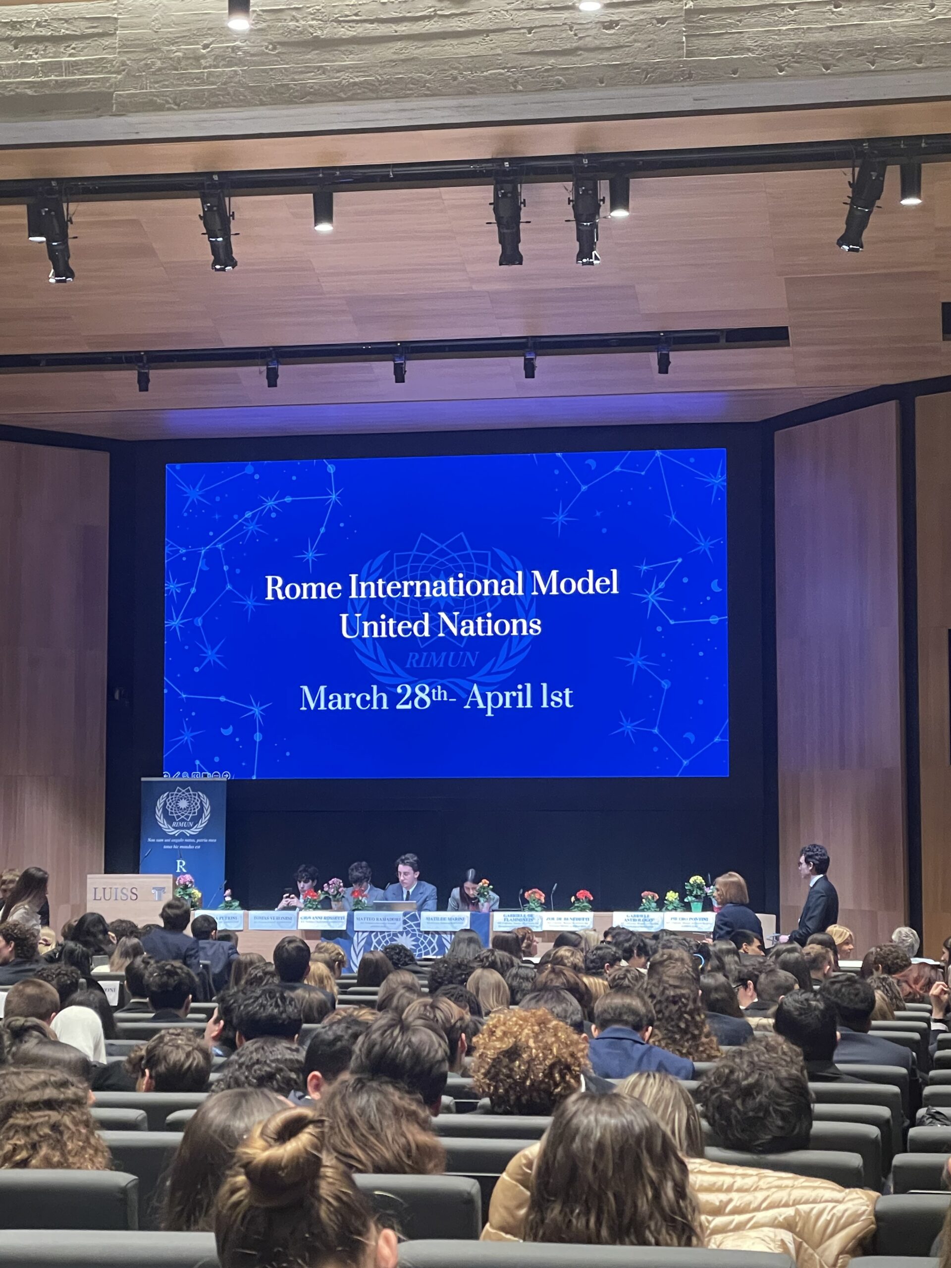 Wie jedes Jahr war es am 28. März endlich wieder so weit: RIMUN hatte begonnen. Das Thema der Konferenz war „Brave New Frontiers“. Unser motiviertes Team aus Mitschülerinnen und Mitschülern war bereits am 26. März nach Rom geflogen, um an der Konferenz teilzunehmen. Jeden Tag wurde intensiv über aktuelle, weltweite Herausforderungen gesprochen – zum Beispiel über nachhaltige Entwicklung. Dabei wurden viele verschiedene Meinungen eingebracht, und jedes Land konnte seine Position vertreten.