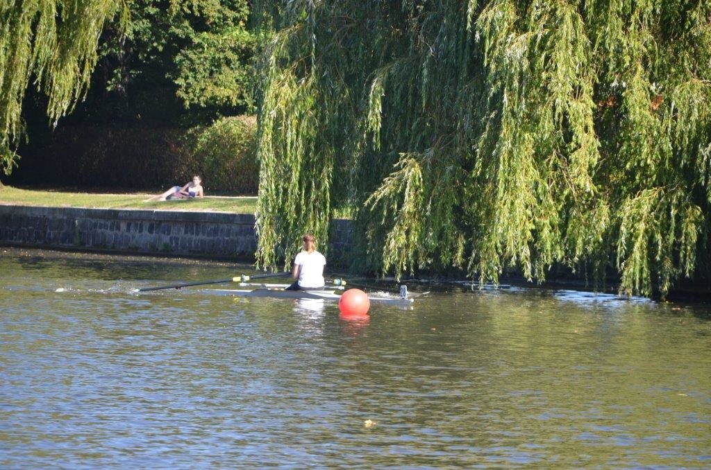 Wer nun den Eindruck gewonnen hat, es sei ein verkorkster Tag gewesen, der irrt. Wir haben beim Einrudern auf den Alsterkanälen ein sehr schönes Ruderrevier kennengelernt. Die Hälfte der Gruppe hat zum ersten Mal in ihrem Leben die 350 m lange Strecke im Einer wettkampfmäßig bewältigt und Platz eins und zwei belegt, obwohl sie in fremden Booten ruderte. Wir wissen es jetzt nun richtig zu schätzen, dass unsere Boote gut gepflegt sind und die Gänge in unserer Bootshalle so breit sind, dass wir die Boote ohne große Schwierigkeiten leicht zu Wasser bringen können. Außerdem haben wir gelernt, dass man auch ohne „Hackebeilchen“ gewinnen kann.