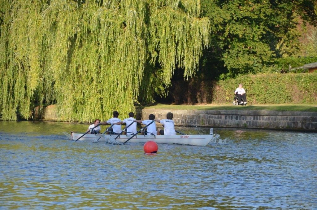 Am 1.09. sollte die interne Regatta in Lübeck stattfinden. Wir hatten im Training vorher schon eine Boje ausgelegt und geübt, wie man sie am schnellsten umrundet. Aber wieder Pech gehabt: Wegen einer zu geringen Zahl von Meldungen wurde die Veranstaltung kurzfristig abgesagt. So war es wichtig, die Schülerruderregatta in Hamburg zu besuchen. Hier waren 98 Mannschaften am Start, und zwischen 13.00 und 18.00 Uhr wurden 20 Rennen abgewickelt. Wir waren rechtzeitig in Hamburg, da wir die Leihboote vor den Rennen noch ausprobieren wollten. Gesagt, getan, doch schon wieder gab es eine Panne: Beim Einrudern öffnete sich die Dolle, und Sam ging unfreiwillig baden. Dabei versenkte er seine Brille. Dann ruderte Merit zum Start und erfuhr dort, dass ihre beiden Mitbewerber abgemeldet worden waren – Pech.