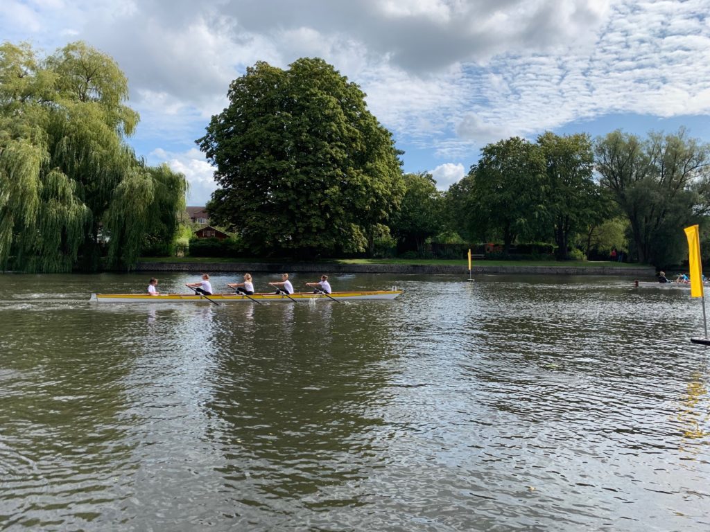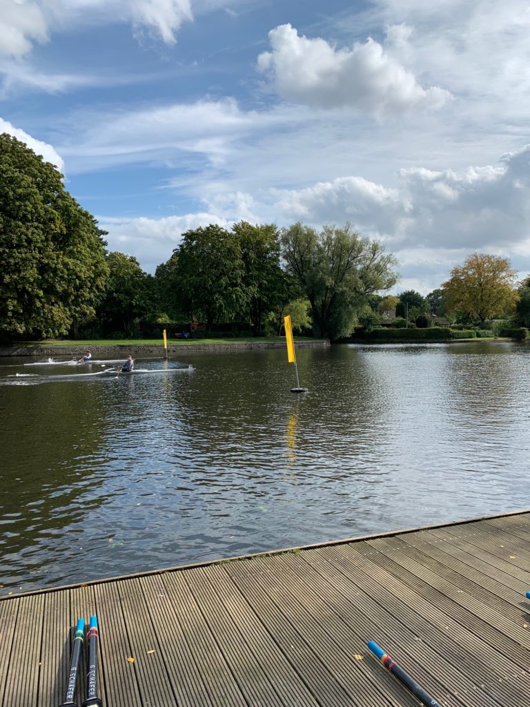 Am 12.09.19 endete der Unterricht für 10 Mitglieder der Ruder-Riege bereits nach der 3. Stunde, denn wir wollten pünktlich beim Bootshaus an der Alster ankommen, um die Leihboote auszuprobieren. Das Meldeergebnis zeigte mit 370 Aktiven einen neuen Teilnehmerrekord und das sonnige und warme Wetter sorgte für einen angenehmen Tag. Für den Juniorinnenvierer bekamen wir ein neues, kaum genutztes Boot. Statt zügig abzulegen und die Strecke abzufahren, reinigte die Mannschaft hingebungsvoll das Boot, um alle Spinnen zu beseitigen. Zu dem neuen Boot gehörten auch Hackebeilchen (=Skulls mit breiten Blättern). Nach dem Einstellen der Stemmbretter wurden die Big Blads ausprobiert, aber sie waren für die Mannschaft zu ungewohnt, so dass sich die Gruppe entschied, Skulls mit dem Normalblatt zu verwenden. Ungewohnt war für alle Lübecker auch der große Übergriff, aber wir durften weder die Innenhebellänge noch die Dollenhöhe verstellen. Dann folgte das Rennen, bei dem Elli, Hanna, Finja, Nila mit Stf. Dareen den 2. Platz belegten.