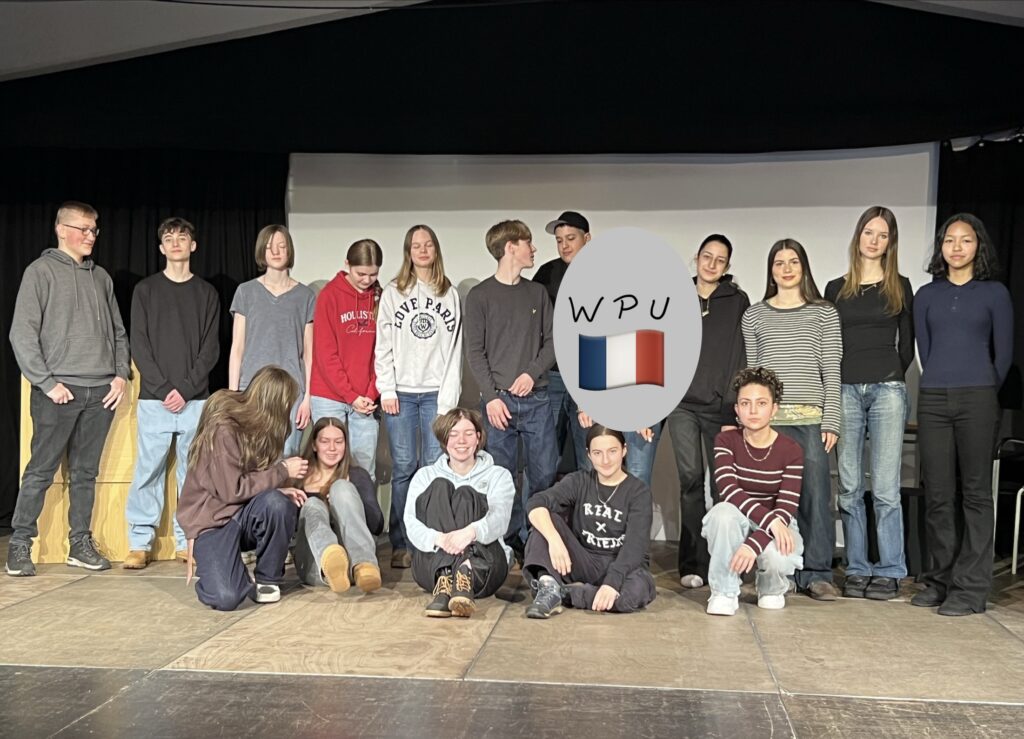 Aber es gab noch mehr Aktivitäten, zum Beispiel führte der WPU-Kurs „Französisch spielend“ der neunten Klassen der 8b kleine selbstgeschriebene Szenen vor, in denen es um einen Arztbesuch, den Besuch des Louvre, einen Cafébesuch oder um eine Buchhandlung sowie eine Reise nach Paris geht.