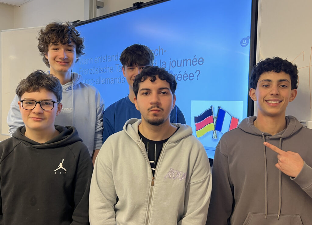 Eigentlich ist der deutsch-französische Tag offiziell der 22. Januar, an der TMS wurde er dieses Jahr jedoch erst am 29.1. gefeiert, weil das Profilseminar ProInt des Französisch-Sprachprofils in Q1 viel für die anderen Klassen vorbereitet hatte, am 22.1. jedoch im Praktikum war.