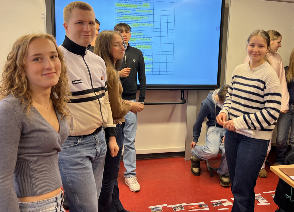 In der 8c und der 8d zeigten zwei Schülerinnen aus dem Sprachprofil einen selbst gedrehten Film über Assoziationen zu Frankreich und den Hintergrund des Deutsch-französischen Tags, zu dem die Klassen hinterher Fragen beantworten mussten und dabei Carambar, eine typisch französische Süßigkeit, gewinnen konnten.