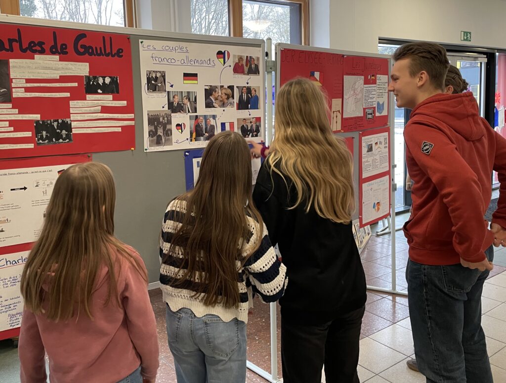 Die 8c schmückte zum 22.1. die Schule unter anderem mit Informationen zum geschichtlichen Hintergrund dieses Tages und zum Frankreichaustausch unserer achten Klassen.